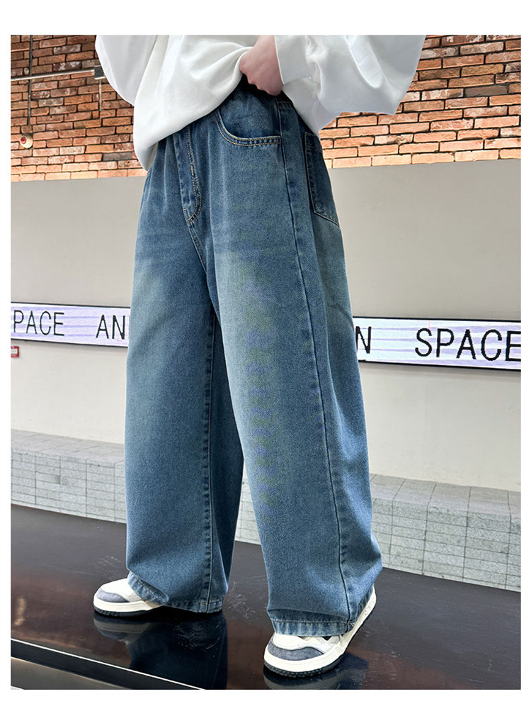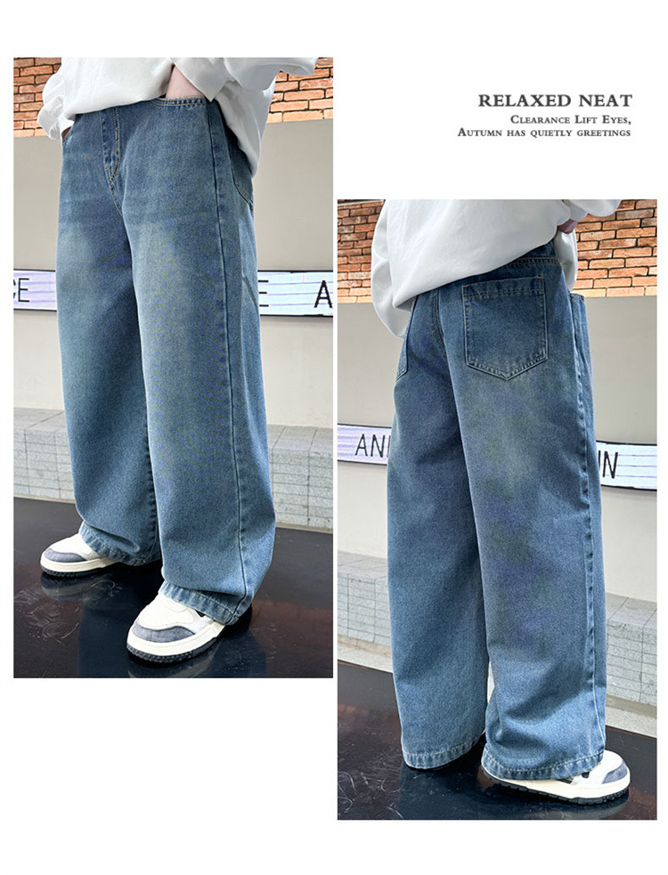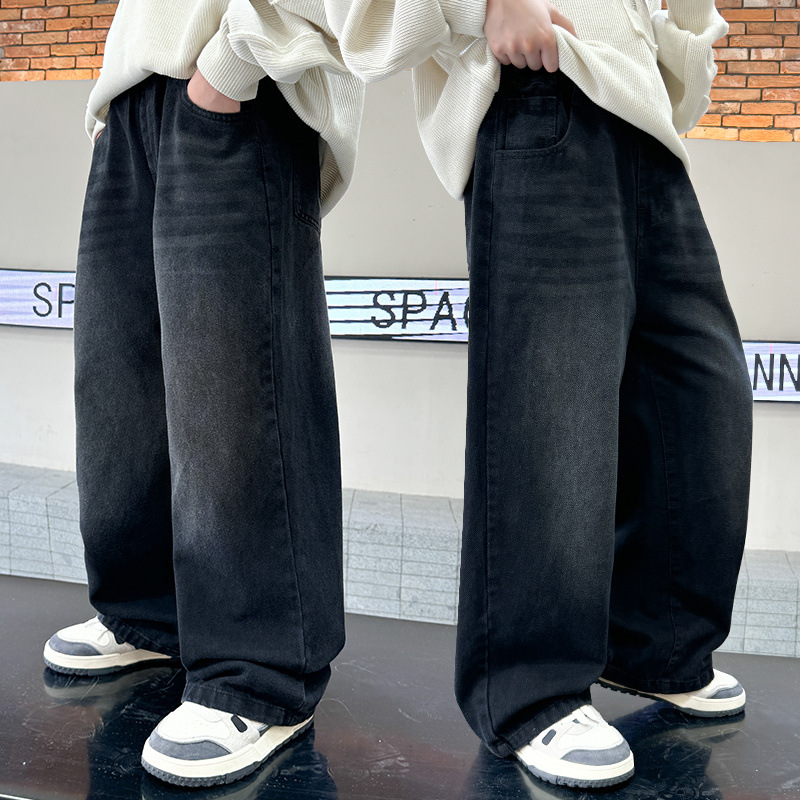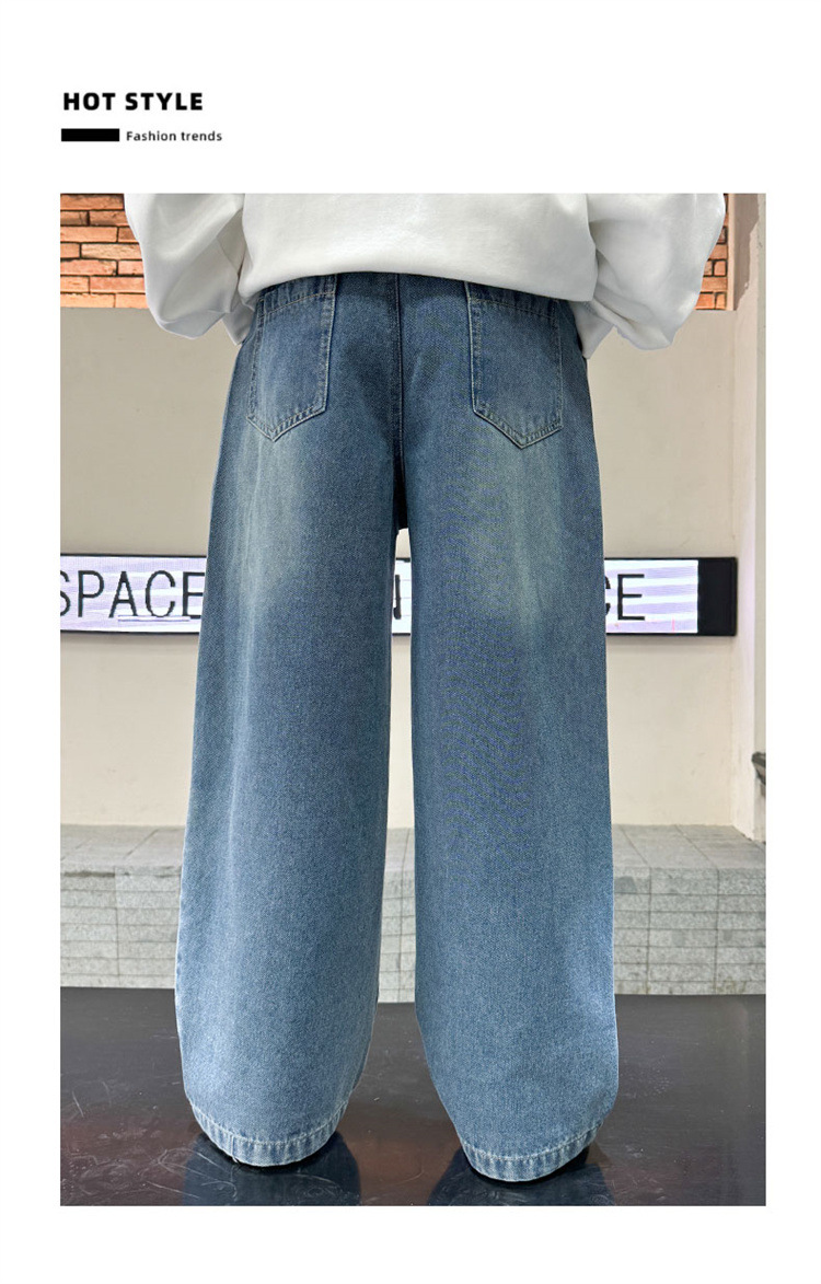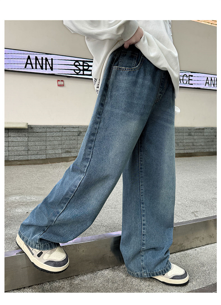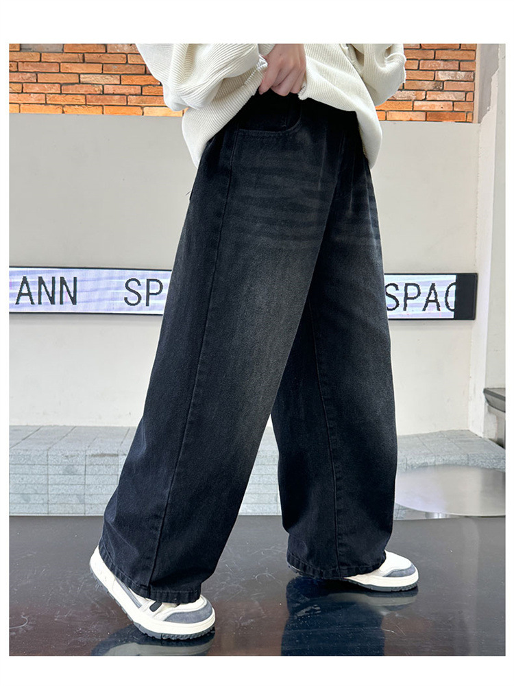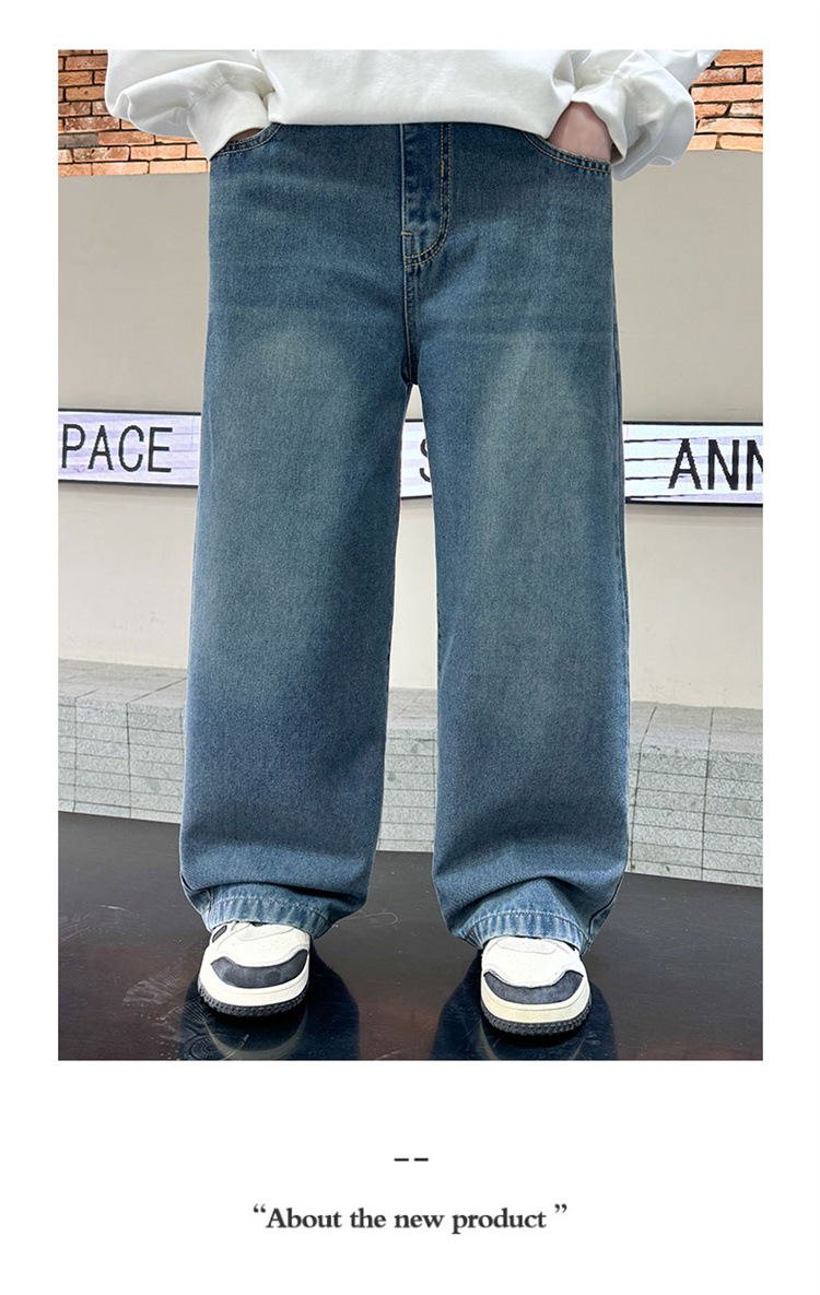 소년의 데님 바지 2025 봄 새로운 도착 큰 아이들 잘 생긴 봄과 가을 소년의 스트레이트 느슨한 넓은 다리 바지스토어 가기
