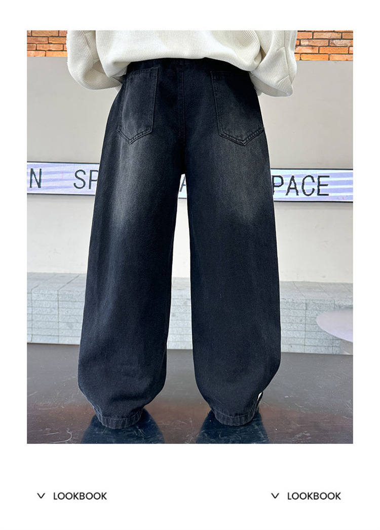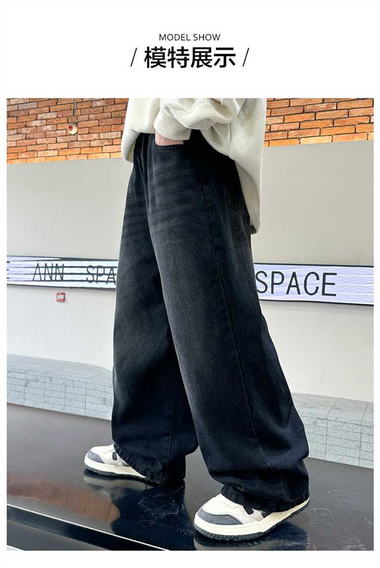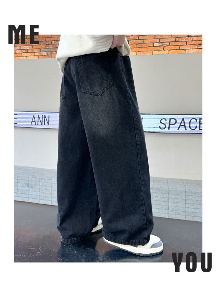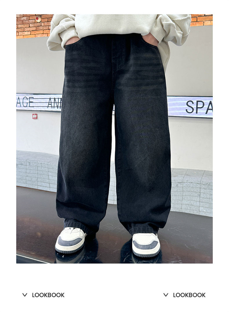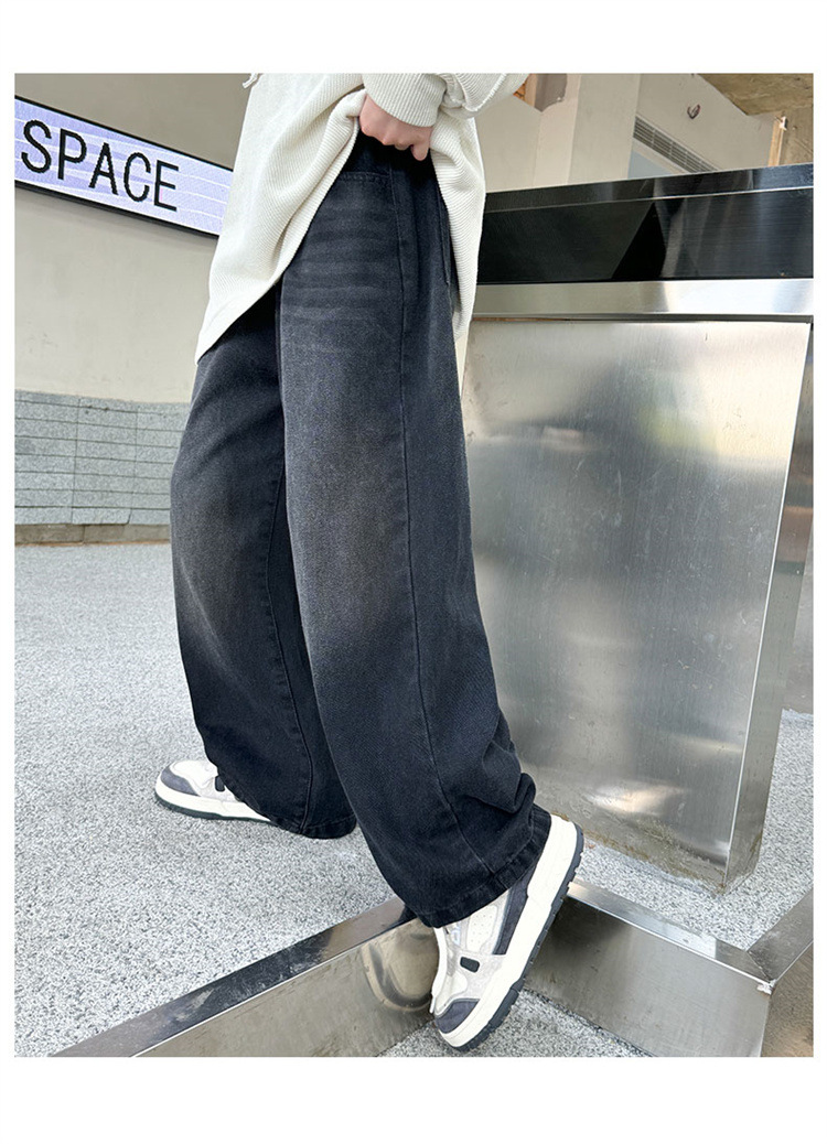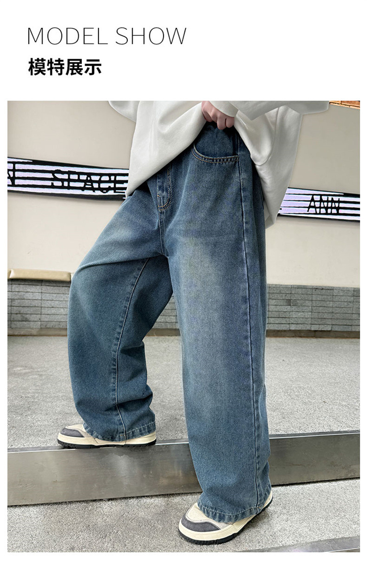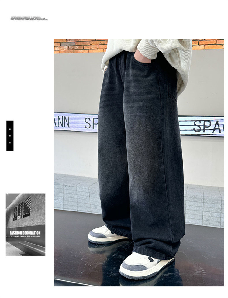 소년의 데님 바지 2025 봄 새로운 도착 큰 아이들 잘 생긴 봄과 가을 소년의 스트레이트 느슨한 넓은 다리 바지스토어 가기