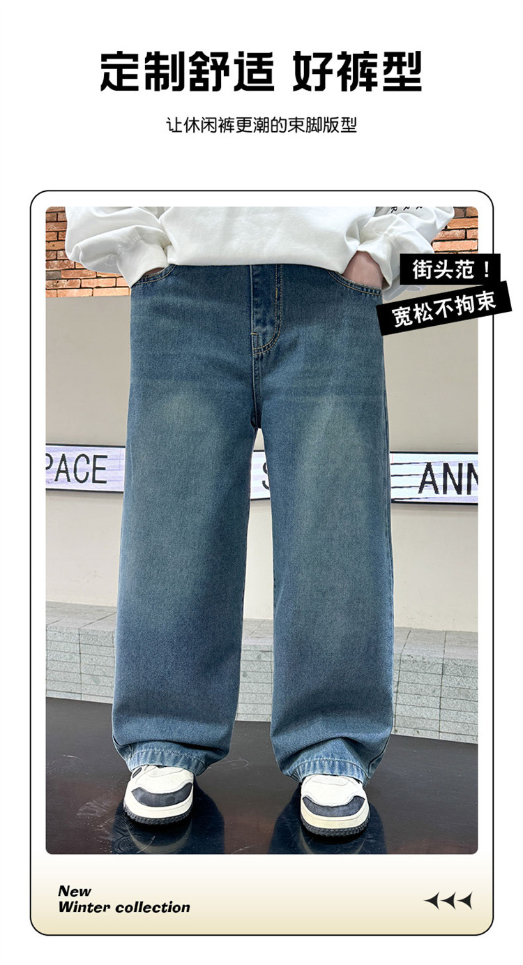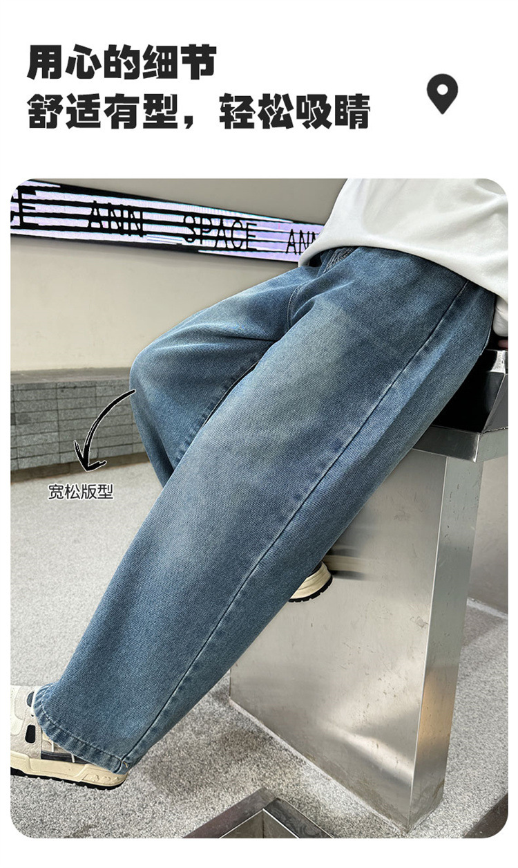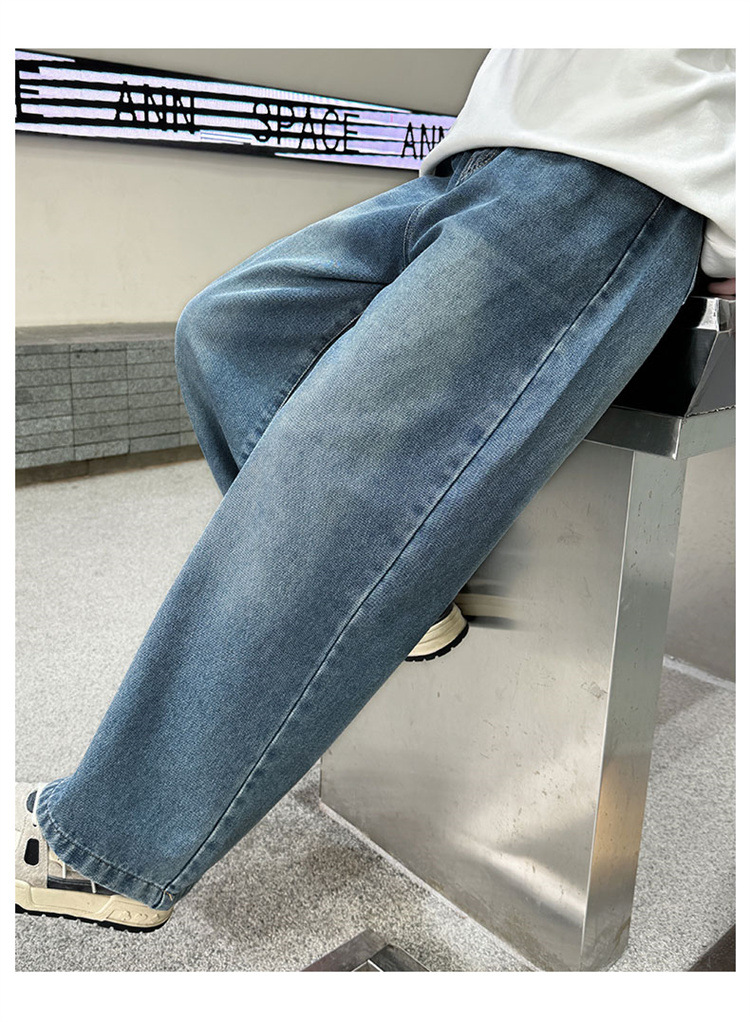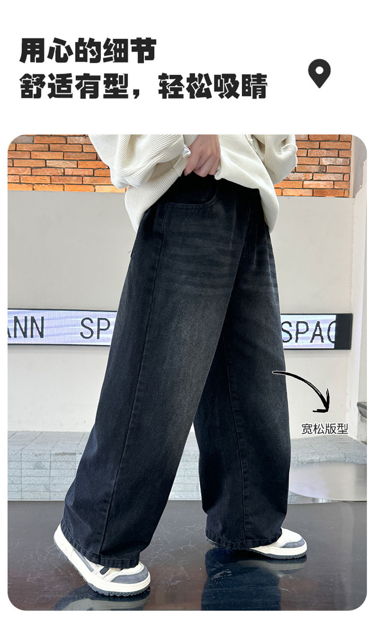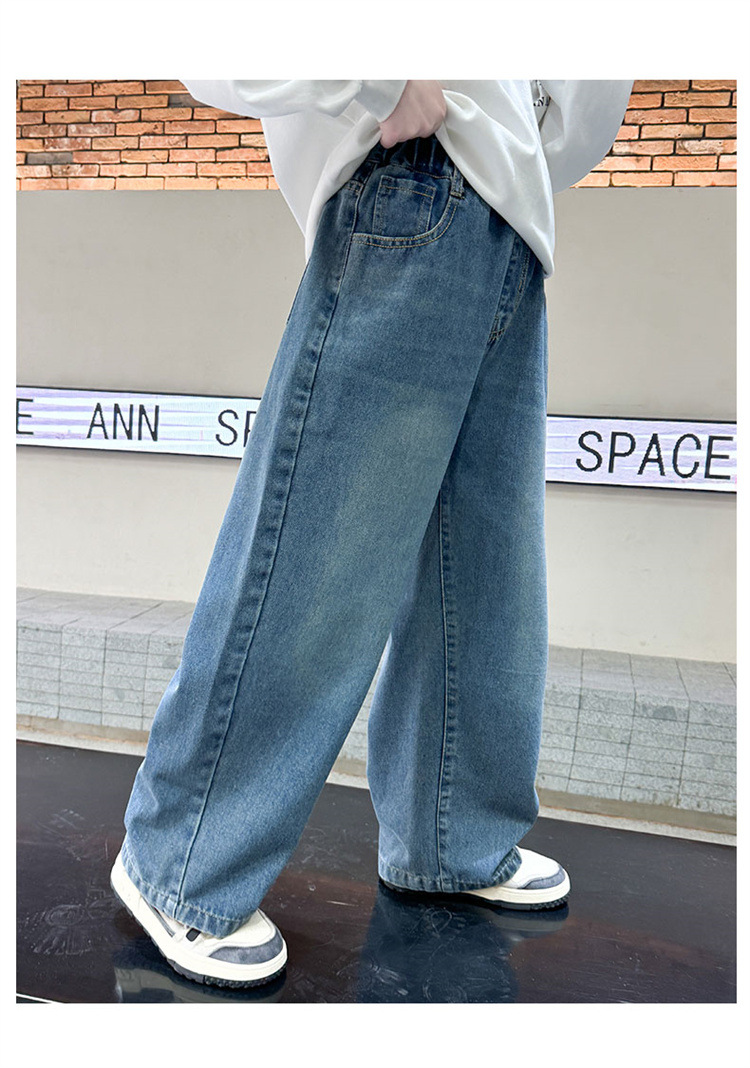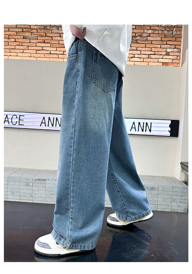 소년의 데님 바지 2025 봄 새로운 도착 큰 아이들 잘 생긴 봄과 가을 소년의 스트레이트 느슨한 넓은 다리 바지스토어 가기