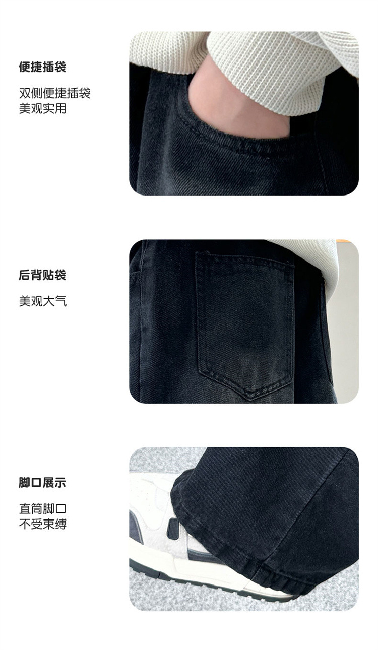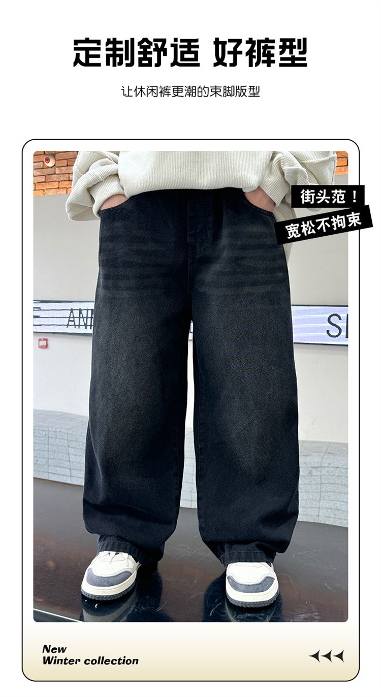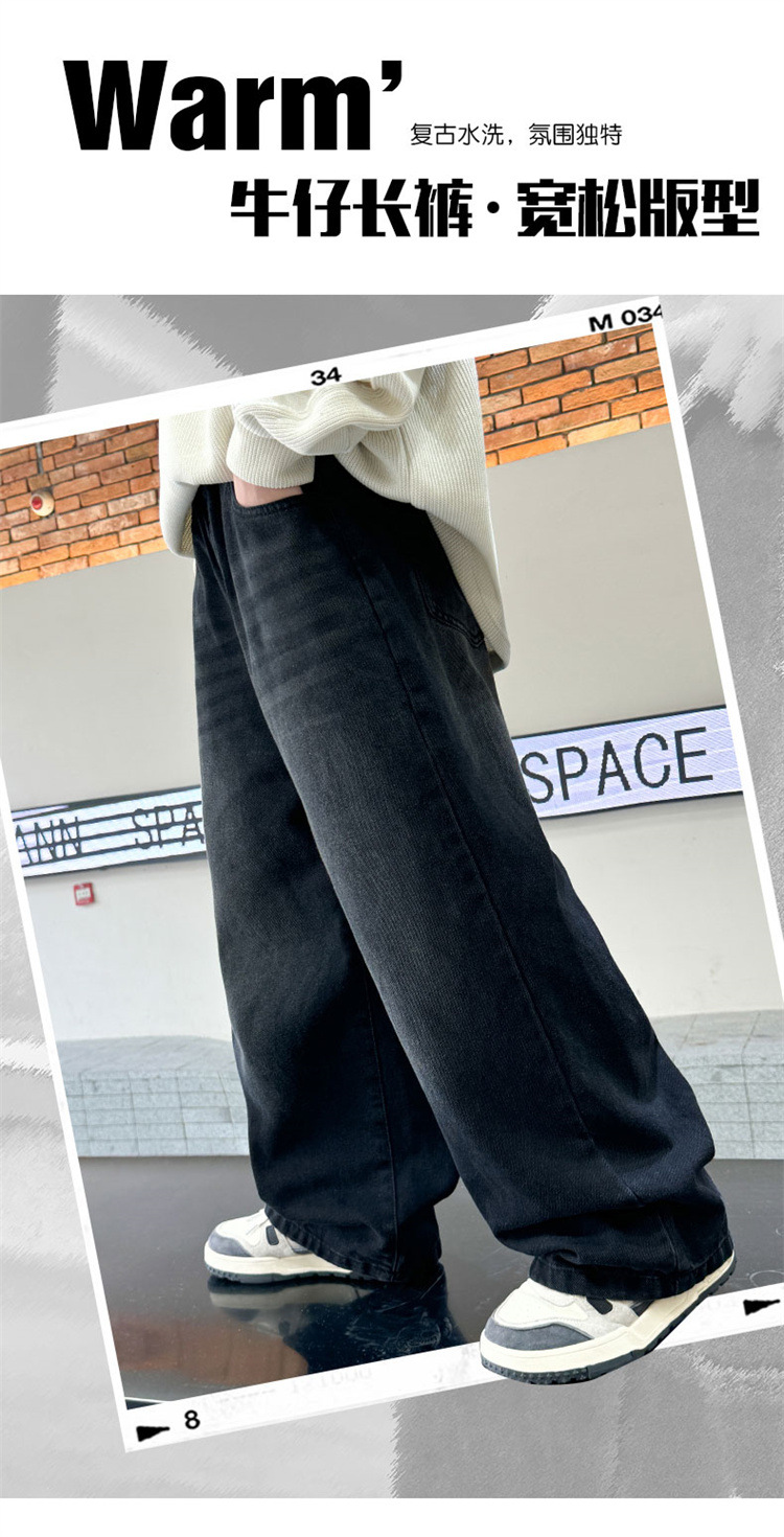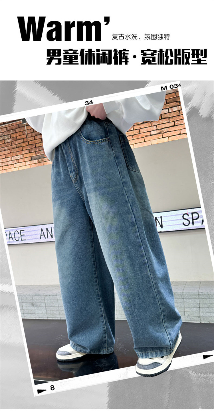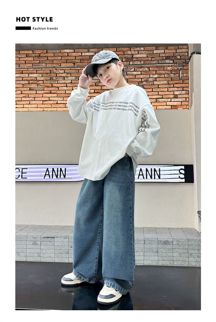 소년의 데님 바지 2025 봄 새로운 도착 큰 아이들 잘 생긴 봄과 가을 소년의 스트레이트 느슨한 넓은 다리 바지스토어 가기