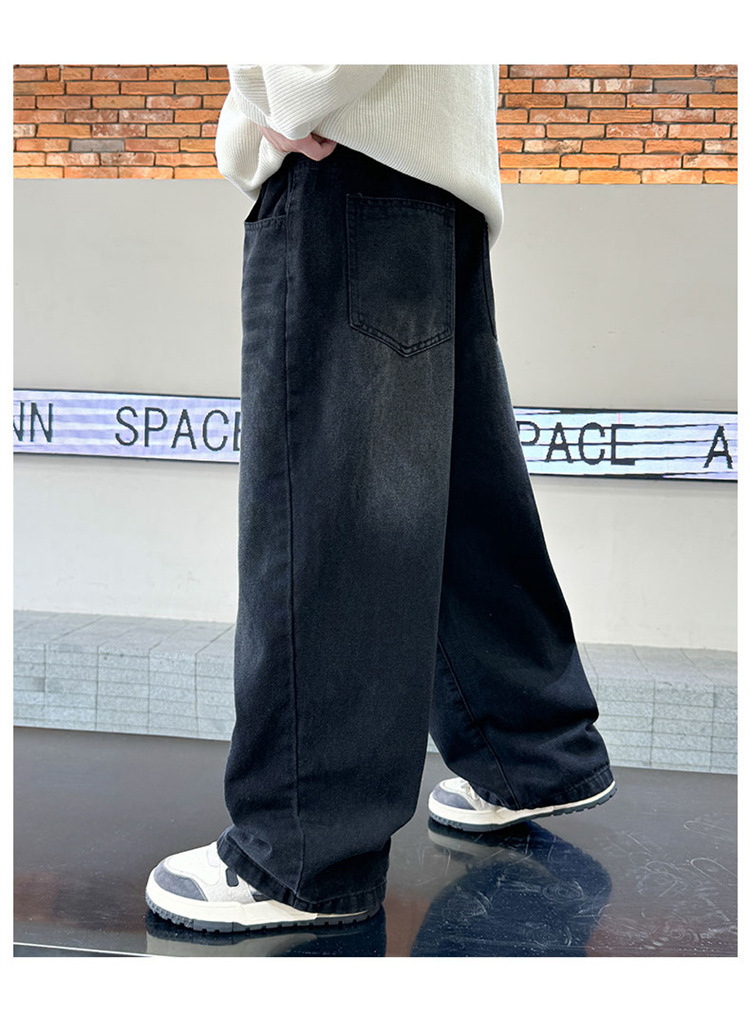 소년의 데님 바지 2025 봄 새로운 도착 큰 아이들 잘 생긴 봄과 가을 소년의 스트레이트 느슨한 넓은 다리 바지