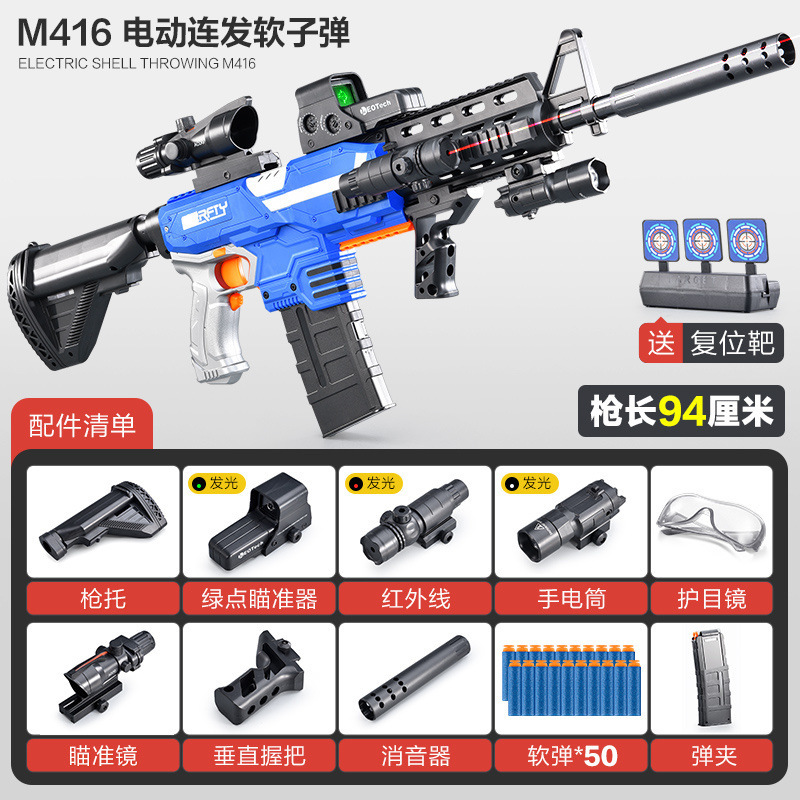 부드러운 총알 총 어린이 장난감 소년 총 시뮬레이션 전기 버스트 총 총알 소년 충전 기관총스토어 가기