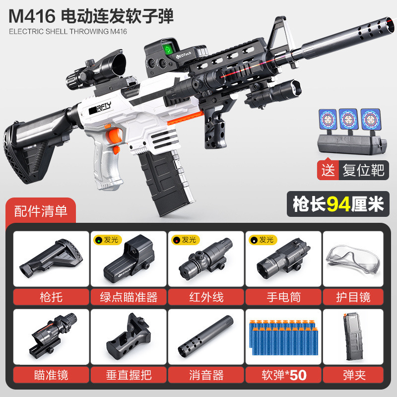 부드러운 총알 총 어린이 장난감 소년 총 시뮬레이션 전기 버스트 총 총알 소년 충전 기관총