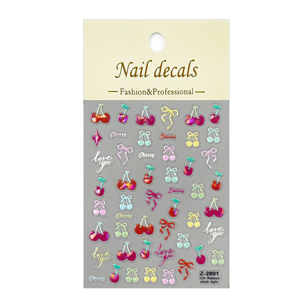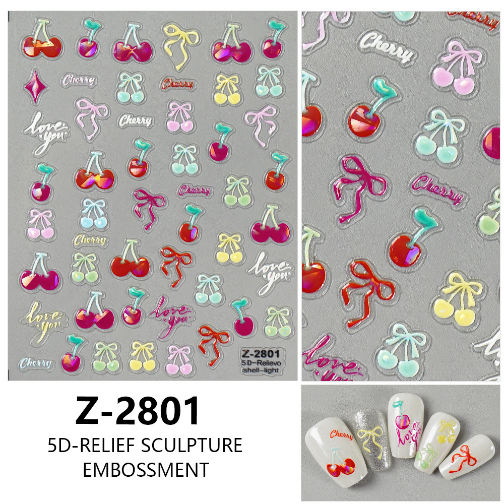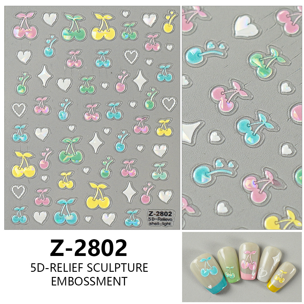 Redanco 새로운 5D 양각 쉘 라이트 체리 활 네일 스티커 스테레오 네일 스티커 Z-2803