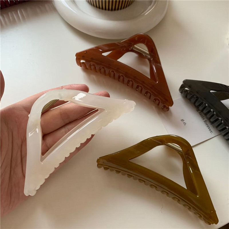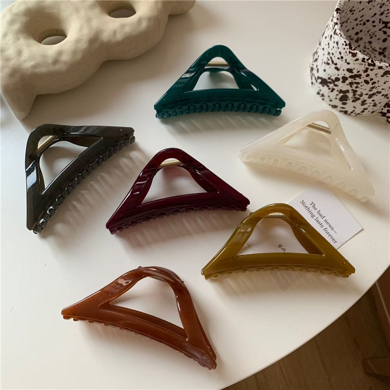 일본과 한국 스타일 게으른 스타일 밝은 삼각형 큰 횡령 클립 우아한 올 매치 백 헤드 상어 클립 헤어 잡아 프랑스 빈티지 헤어 액세서리