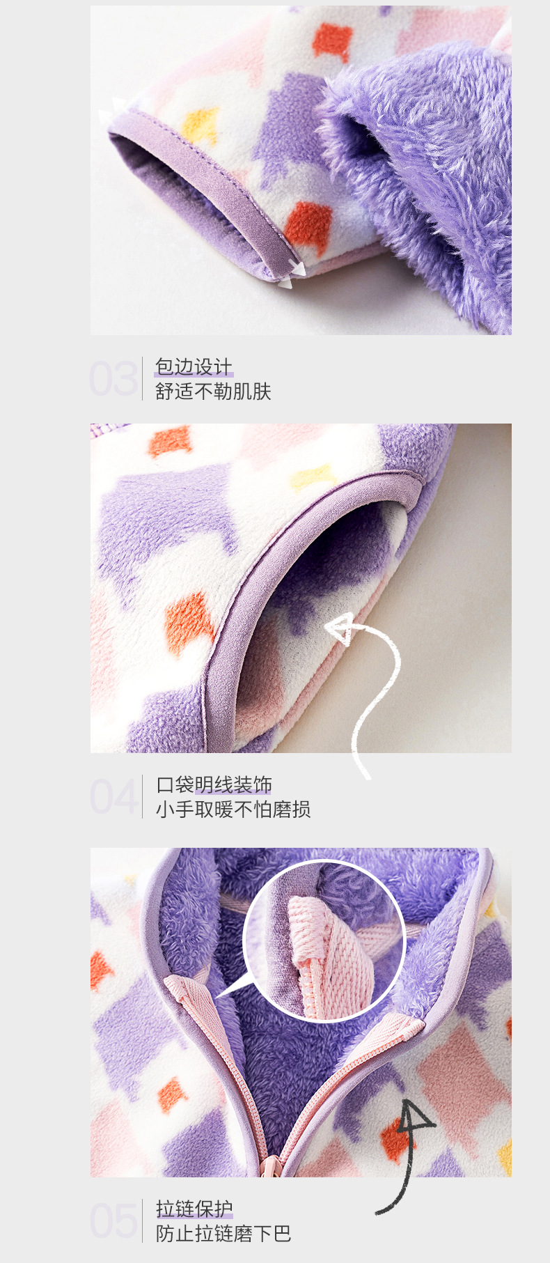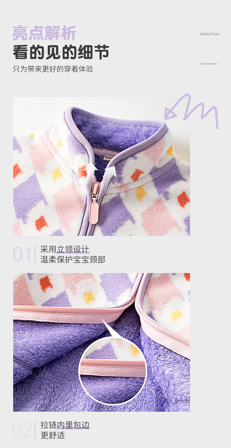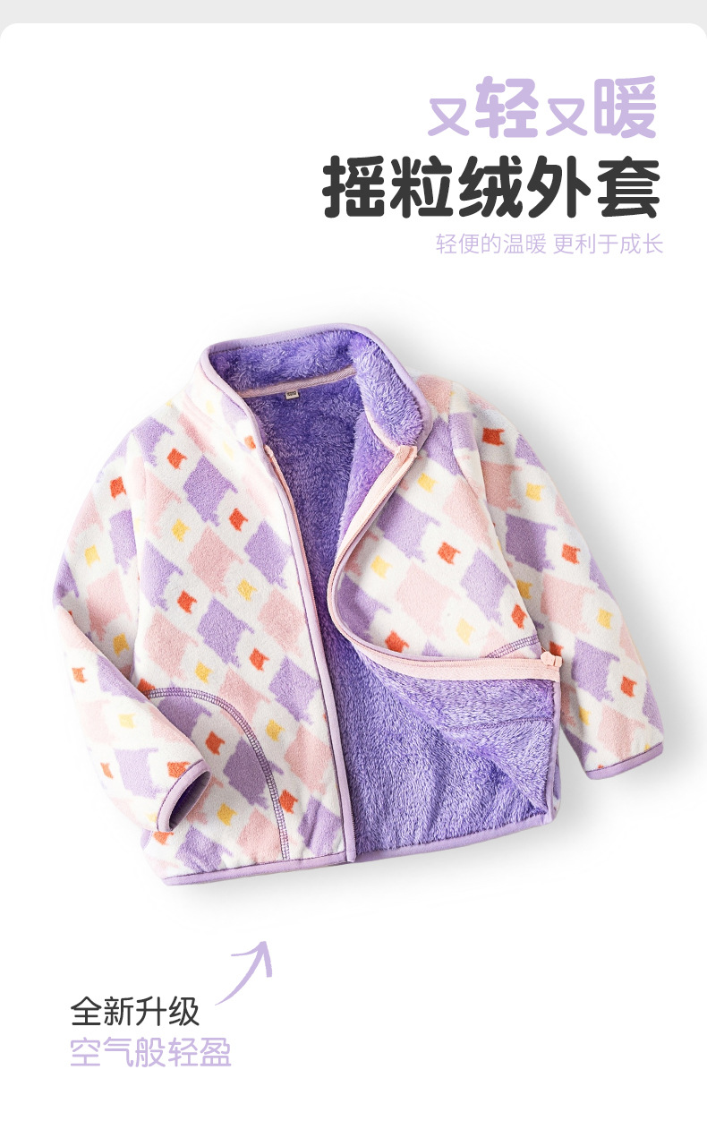 어린이 양털 재킷 2024 겨울 소녀 보라색 다이아몬드 양털 칼라 학교 필요한 기모 두꺼운 재킷스토어 가기
