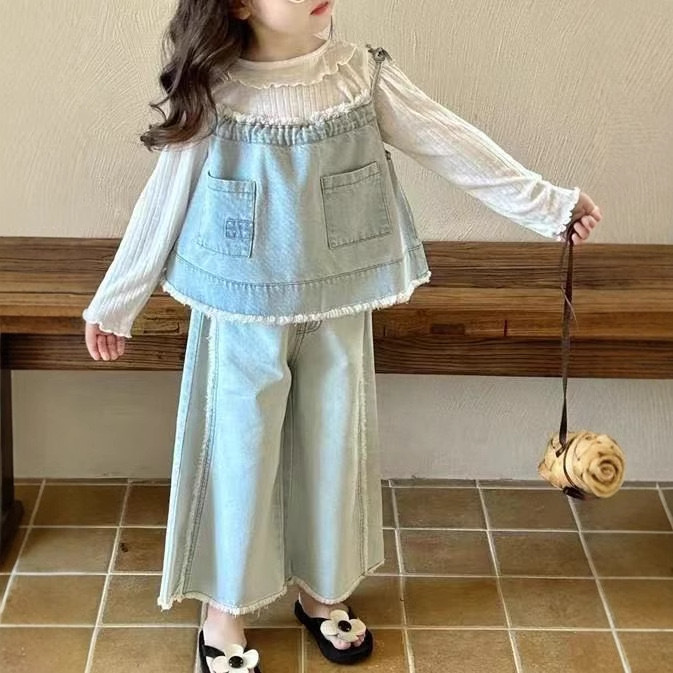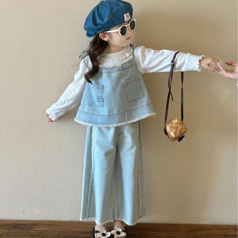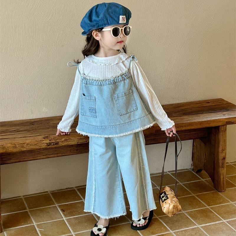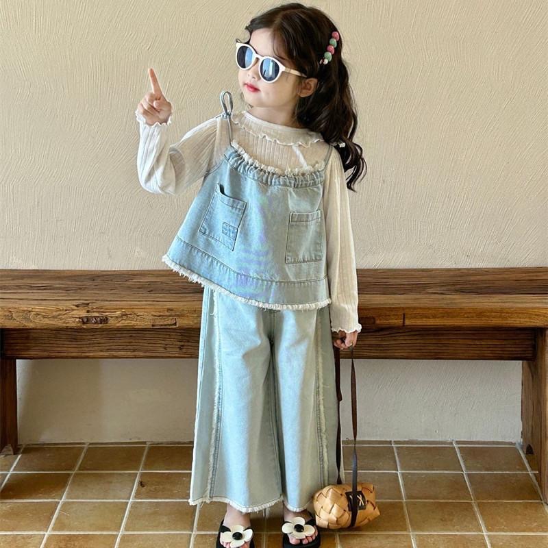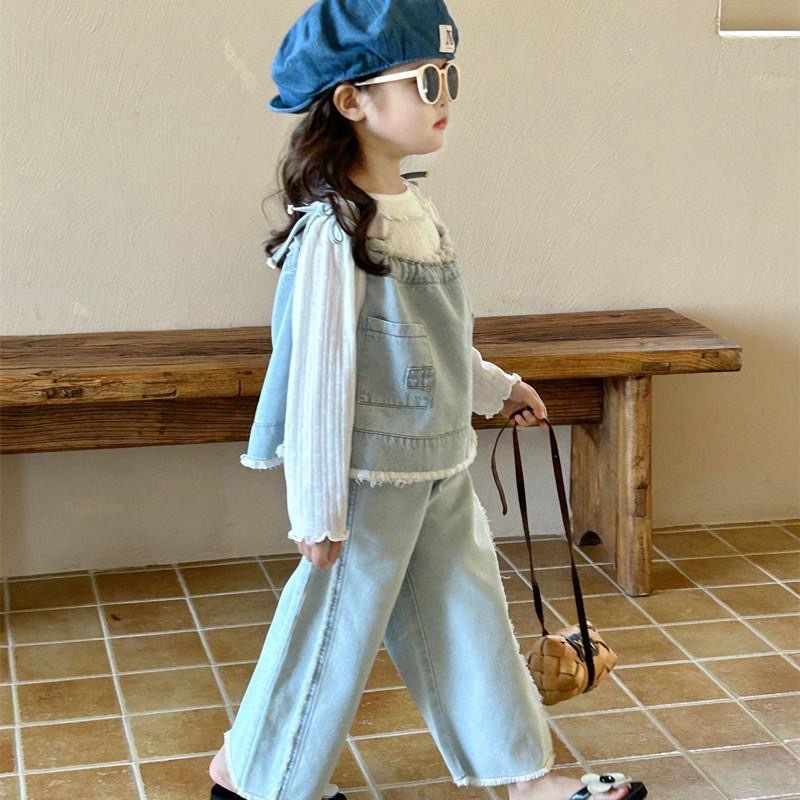 소녀 한국식 세트 2025 봄과 가을 새 데님 슬링 3 피스 세트 어린이 유행 인터넷 인기 한국식 세트