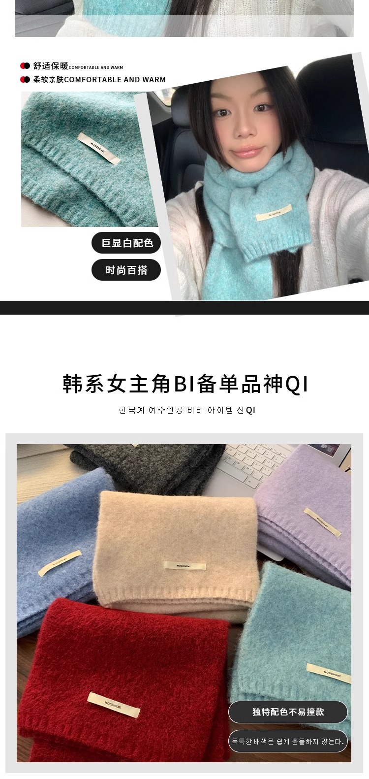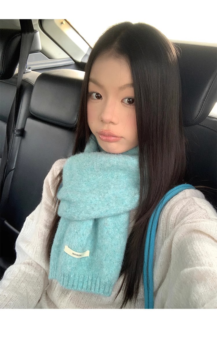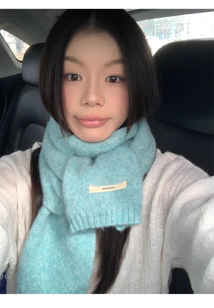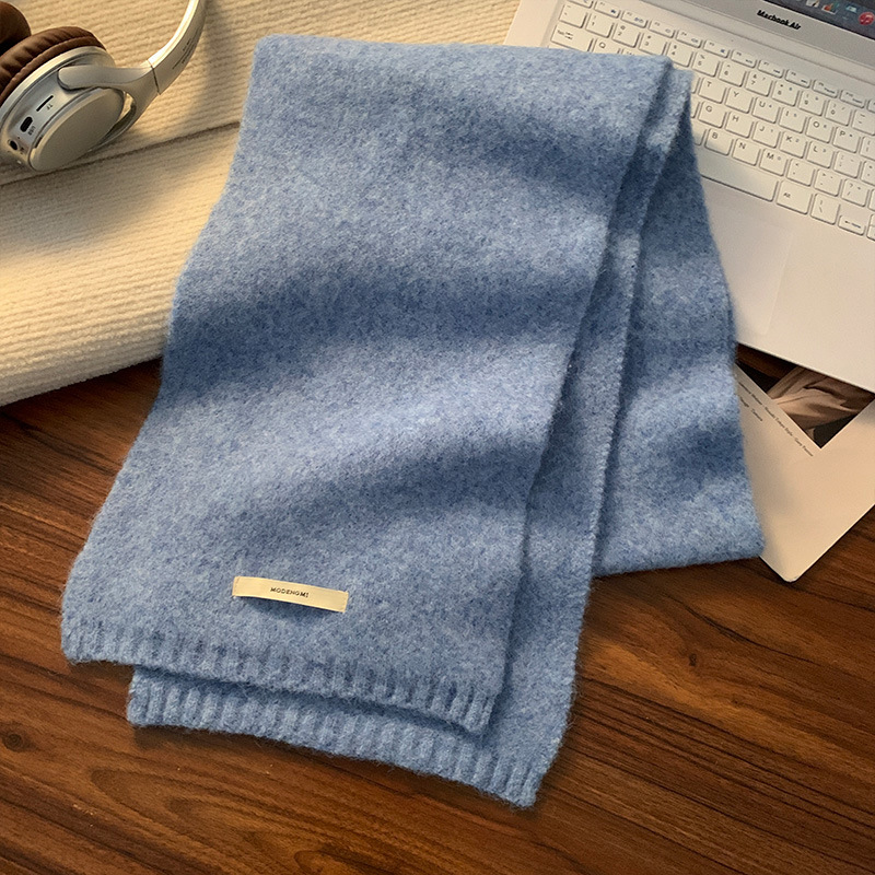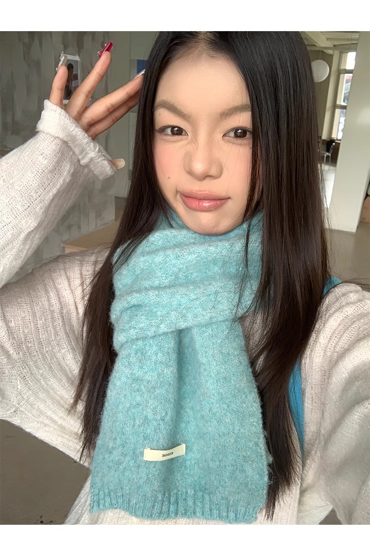 2024 가을과 겨울에 여성을위한 레이크 블루 울 소프트 왁스 니트 스카프 학생들을위한 두꺼운 따뜻한 올 매치 넥 보호스토어 가기
