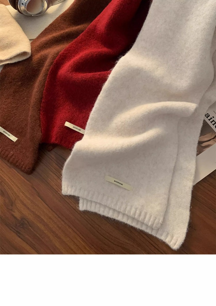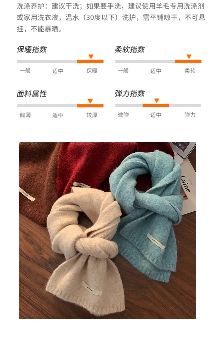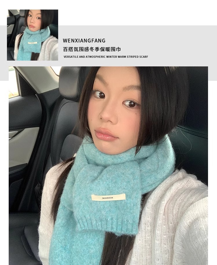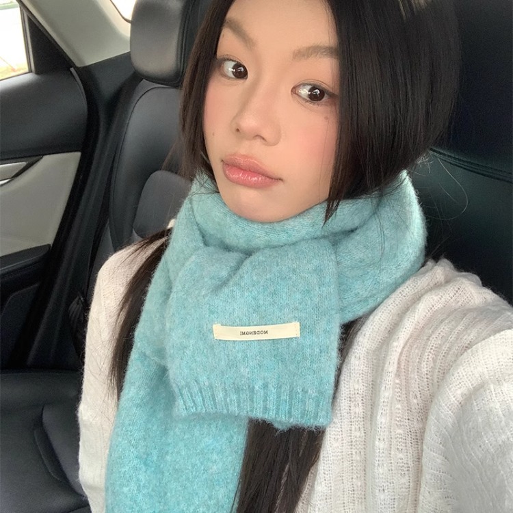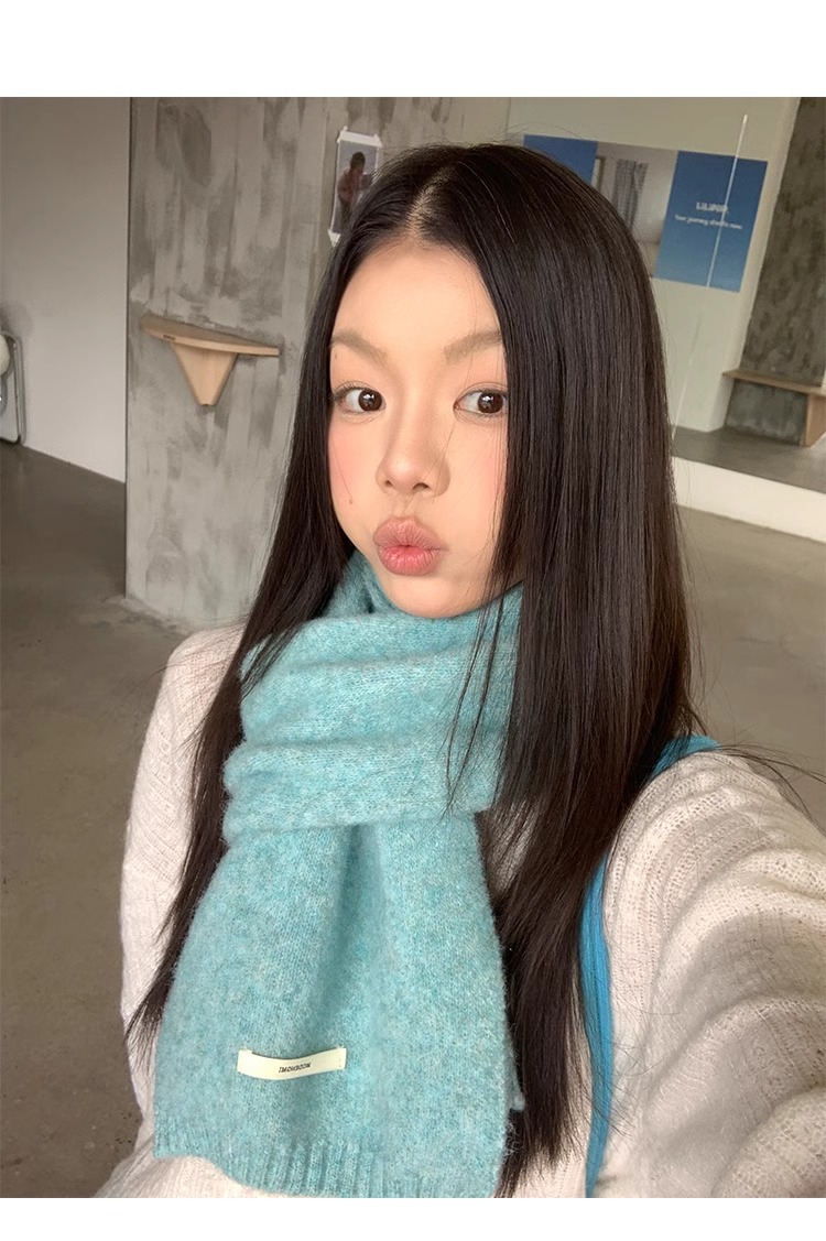 2024 가을과 겨울에 여성을위한 레이크 블루 울 소프트 왁스 니트 스카프 학생들을위한 두꺼운 따뜻한 올 매치 넥 보호