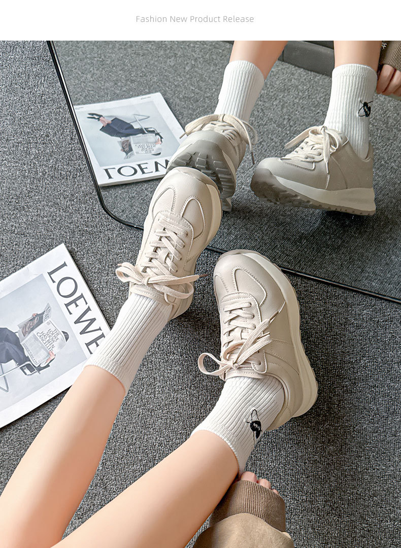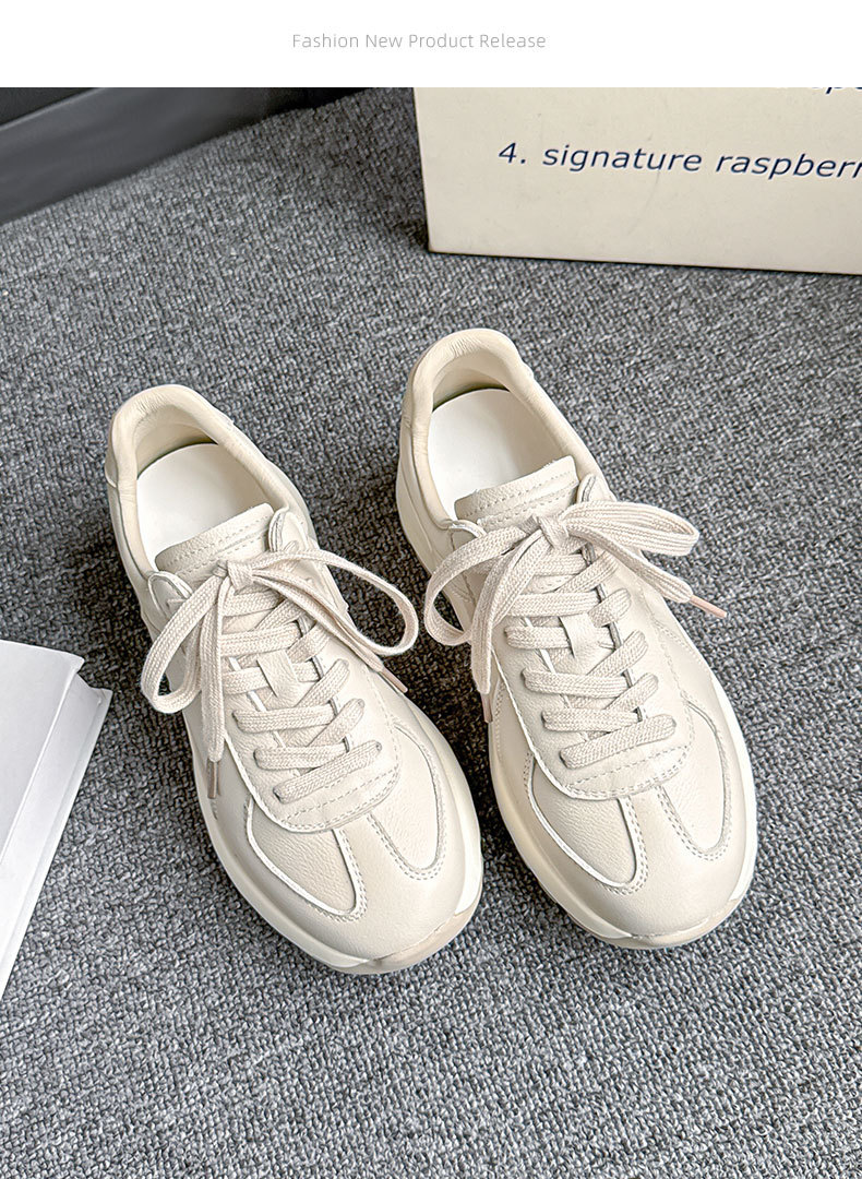 작은 흰색 신발 탑 레이어 Cowhide 여성 신발 새로운 패션 올매치 두꺼운 하단 레이스 업 폭발성 고층 슬리밍 스포츠 캐주얼 신발스토어 가기
