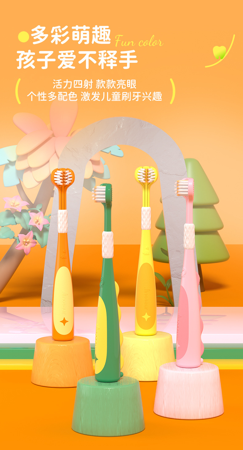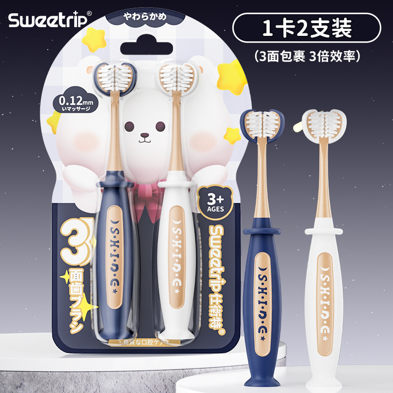 [투팩] C엔드 폭발물 어린이 부드러운 머리 3 면 칫솔 3-12 세 어린이 3 머리 칫솔 정품스토어 가기