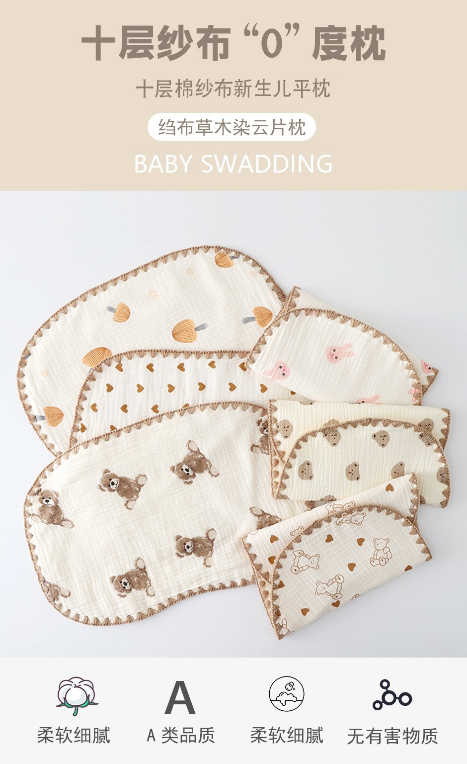신생아 구름 베개 아기 10 층면 거즈 통기성 땀 흡수성 아기 0 ~ 6 개월 침 방지 베개 수건