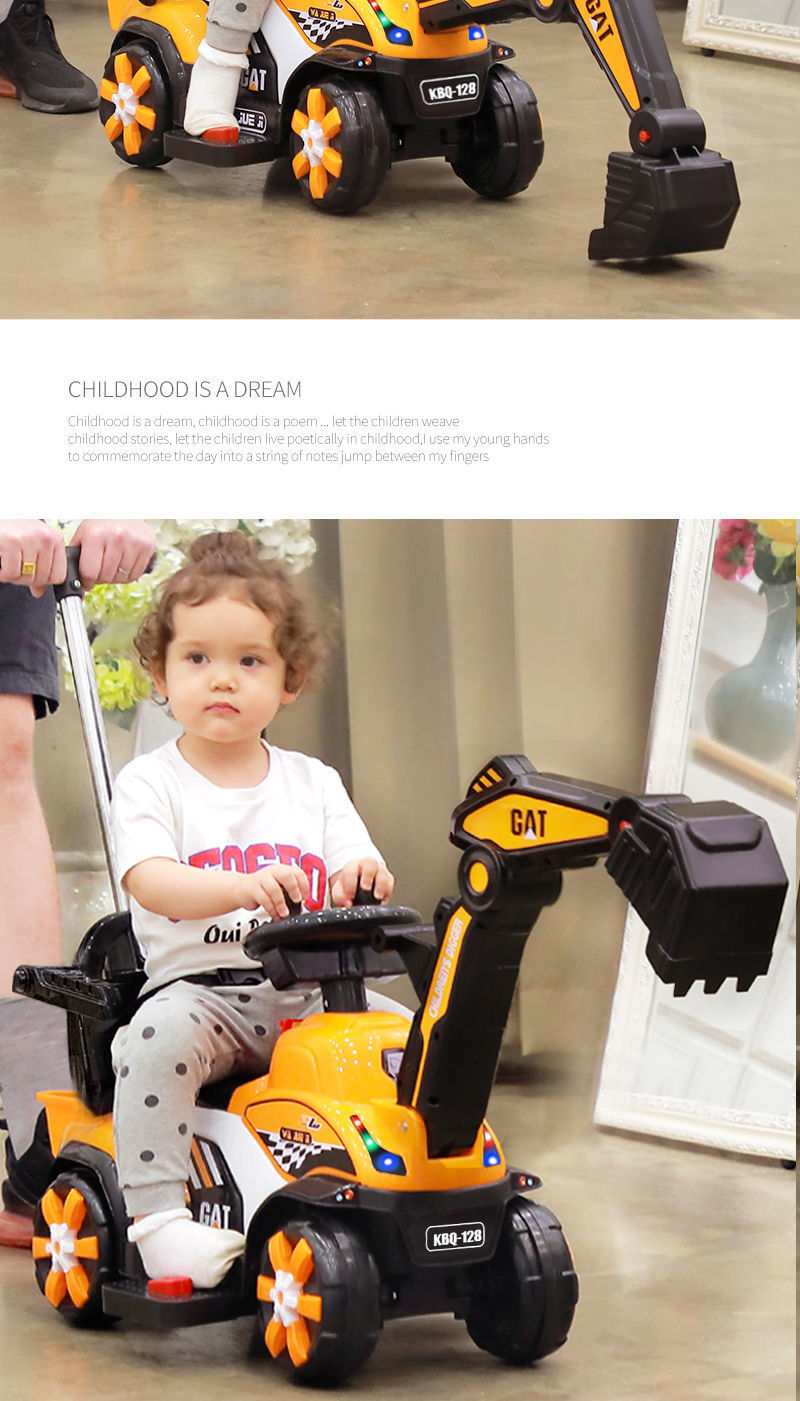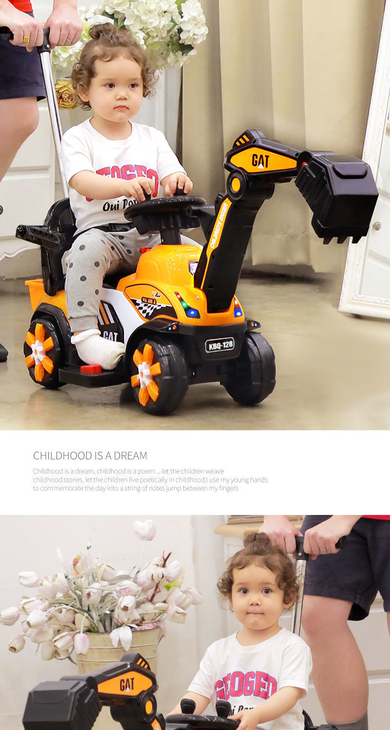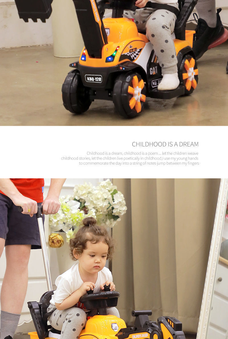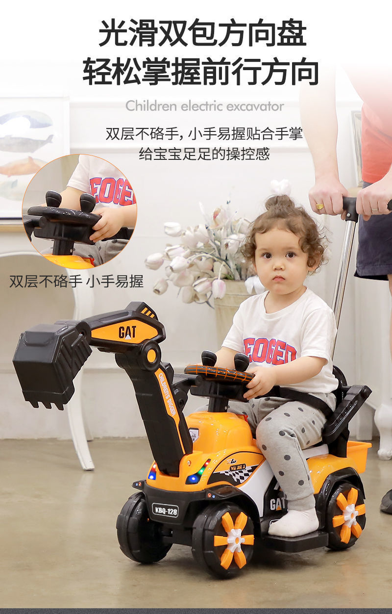 • 노란색 완전 전기 + 조기 교육 음악 및 조명 + 조종 가능한 푸시 핸들 + 대형 드래그 버킷