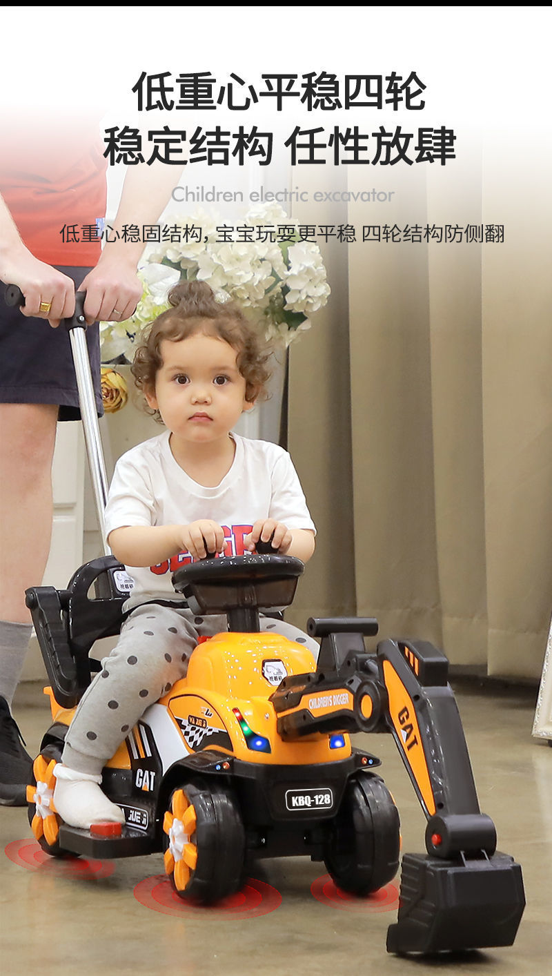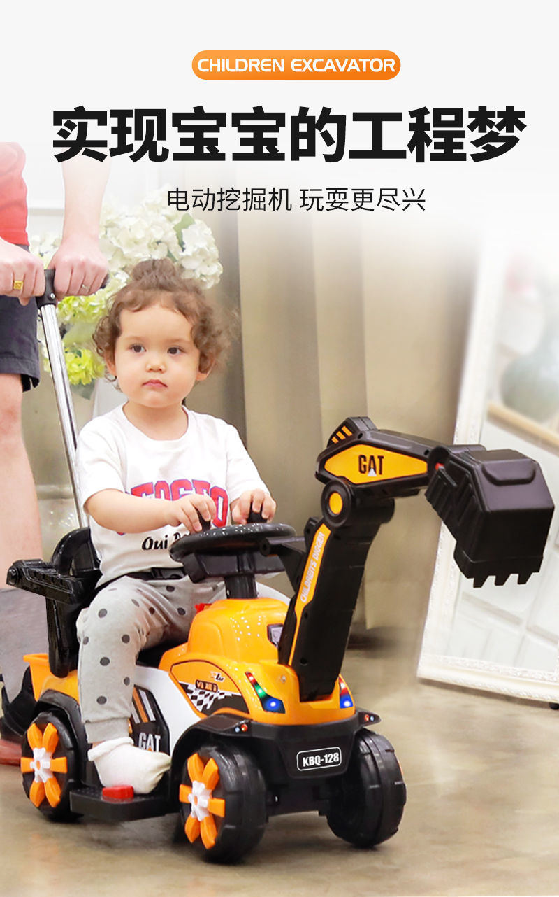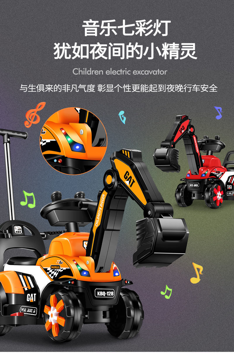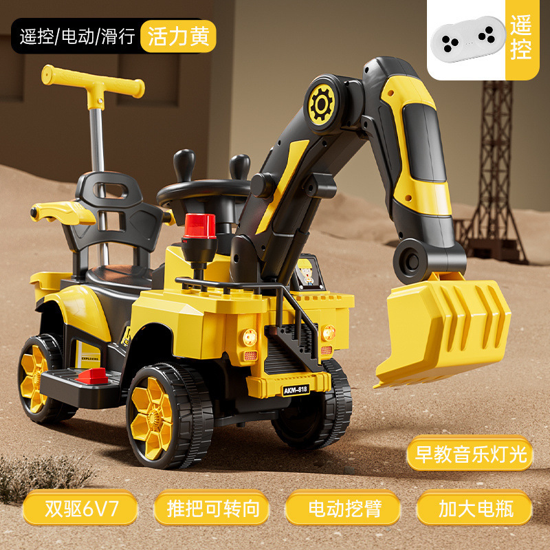 • 노란색 완전 전기 + 조기 교육 음악 및 조명 + 조종 가능한 푸시 핸들 + 대형 드래그 버킷