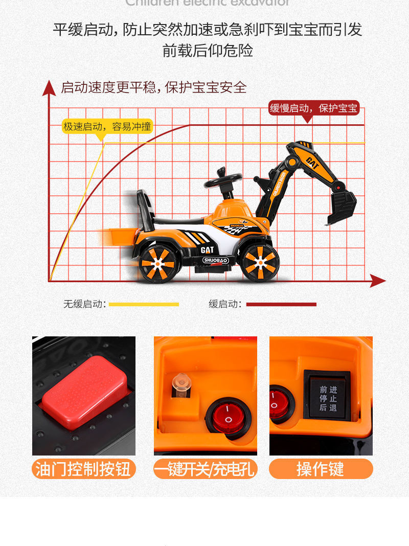 • 빨간색 전기/슬라이딩 + 수동 굴착 암 + 음악 및 조명