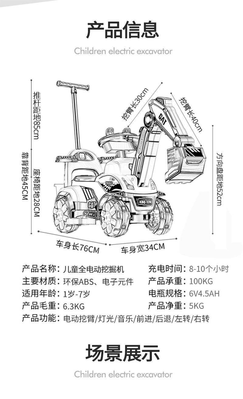 어린이 전기 굴삭기 엔지니어링 차량 소년의 장난감 자동차 굴삭기 사이드 라이드 후크 기계 대형 굴삭기 후크 기계스토어 가기