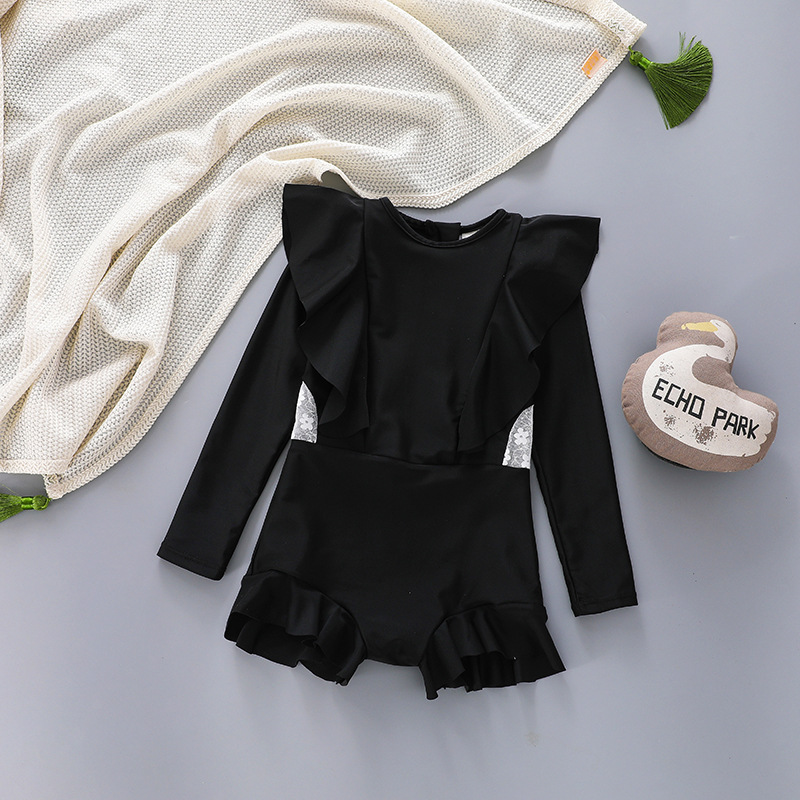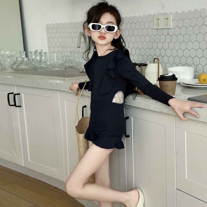 어린이를위한 새로운 하이 퀄리티 소녀 우아한 레이스 수영복 어린이 긴 소매 수영복 선 스크린 수영복