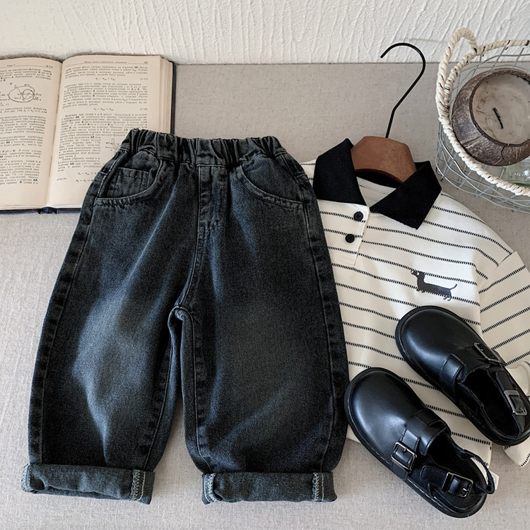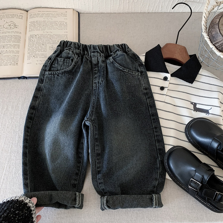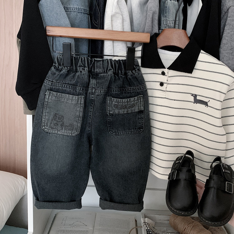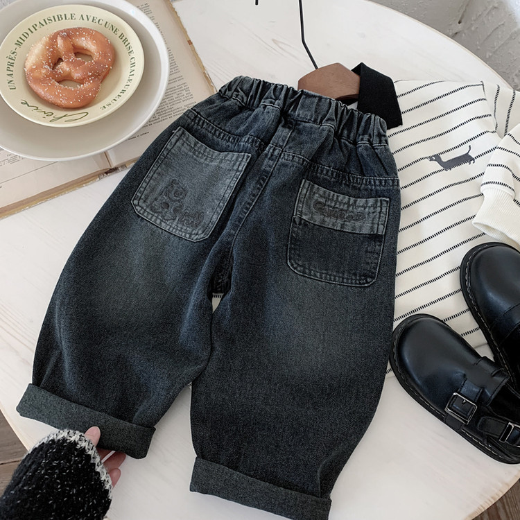 아동용 청바지 2025년 가을 신상 남아용 만화 자수 포켓 바지 루즈핏 패셔너블 팬츠
