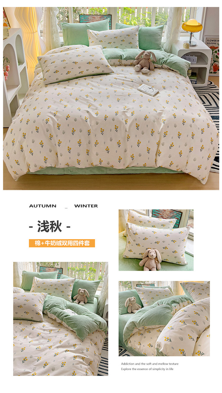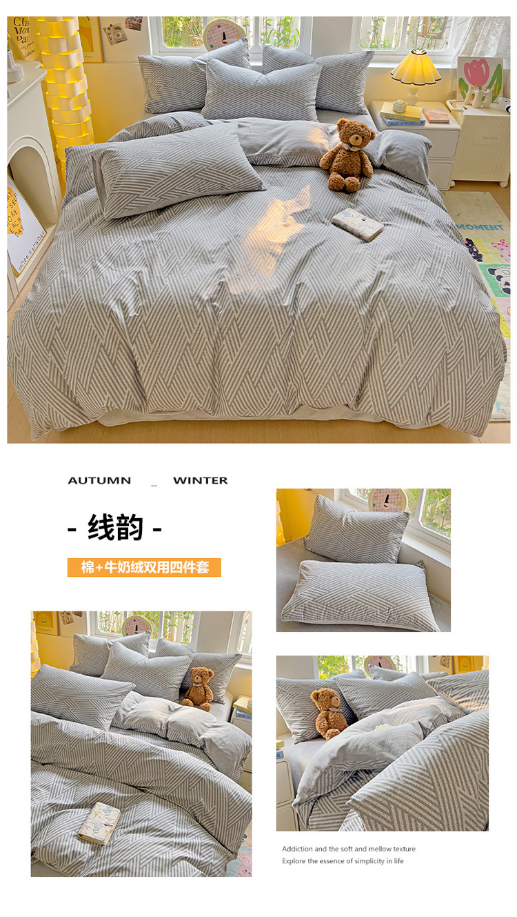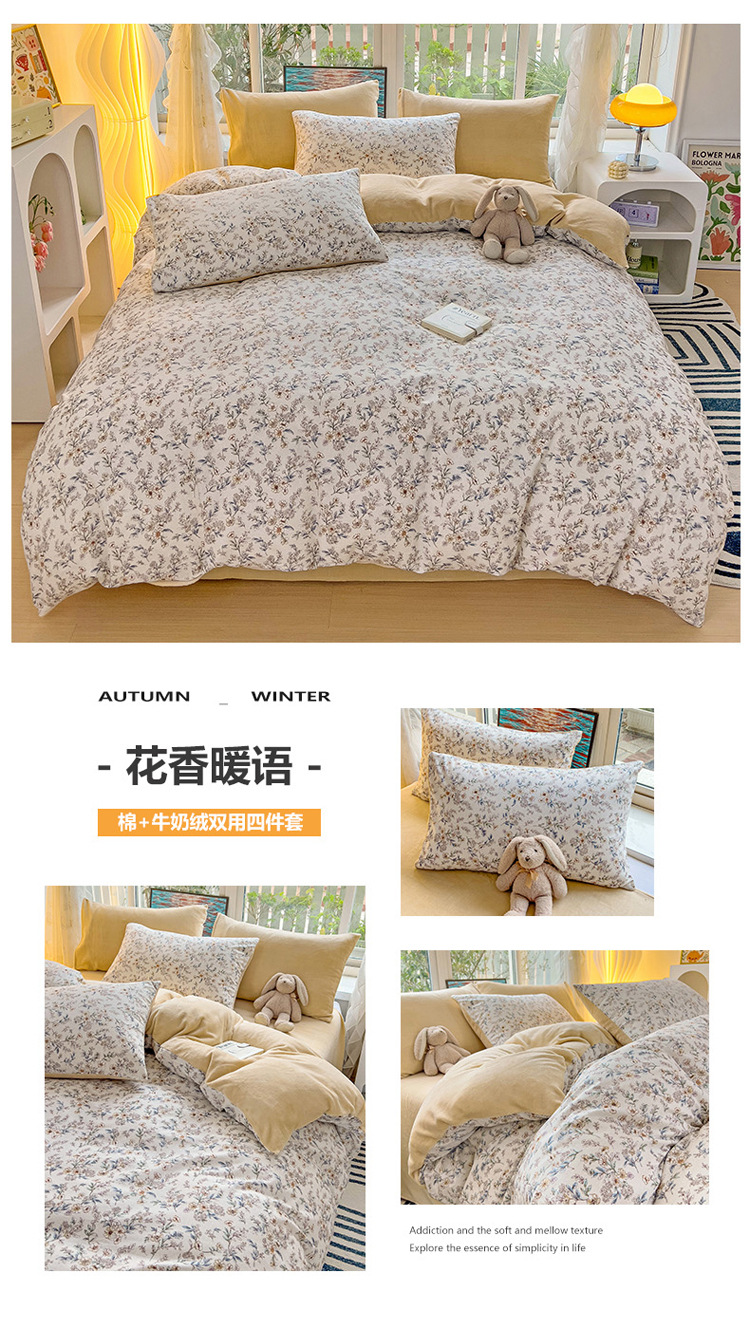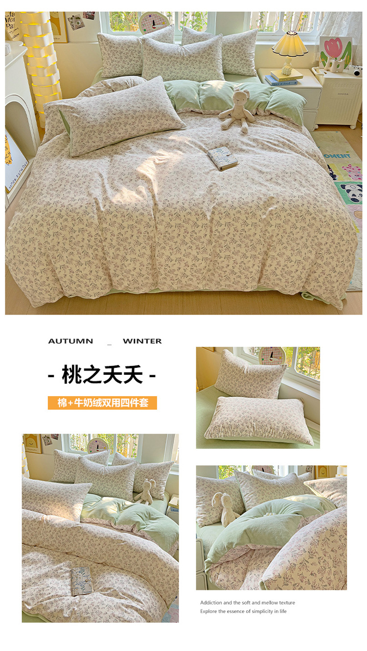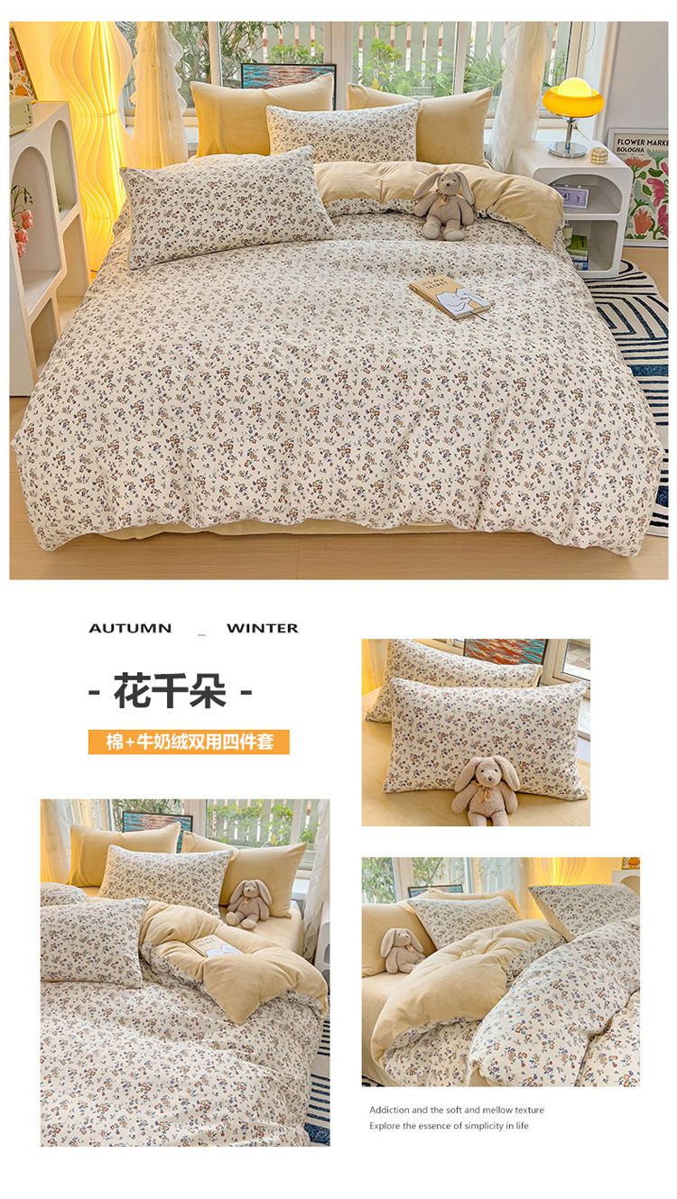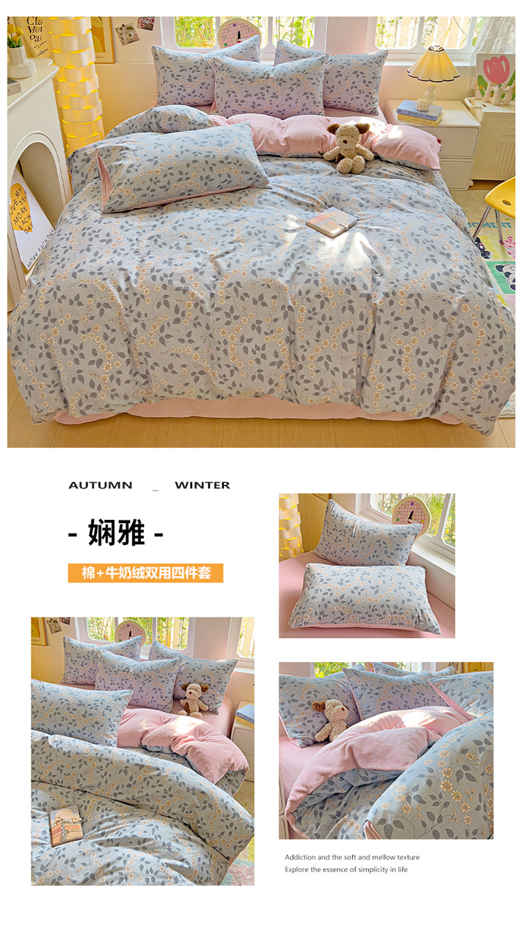 가을과 겨울 면화 패딩 우유 벨벳 4 피스 학생 어린이 기숙사 3 피스 난통