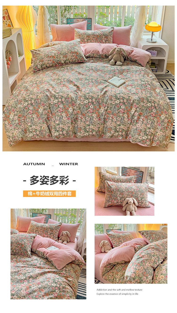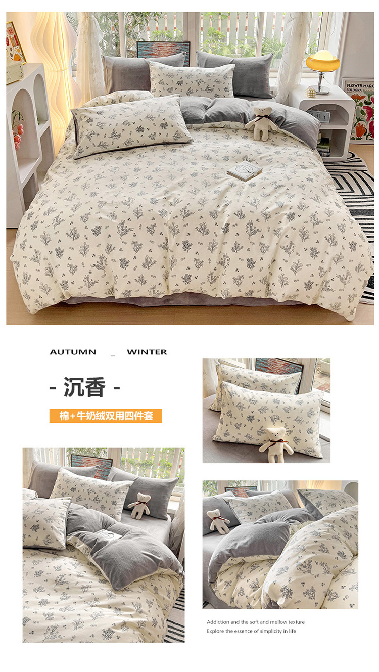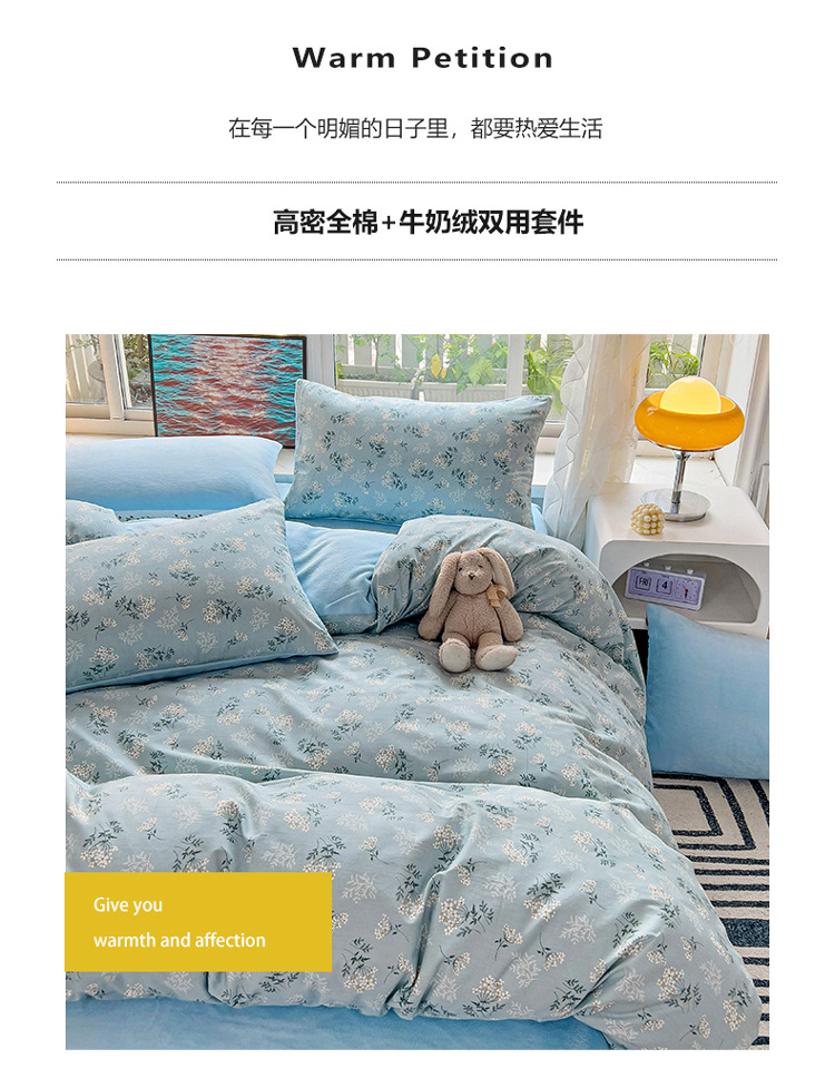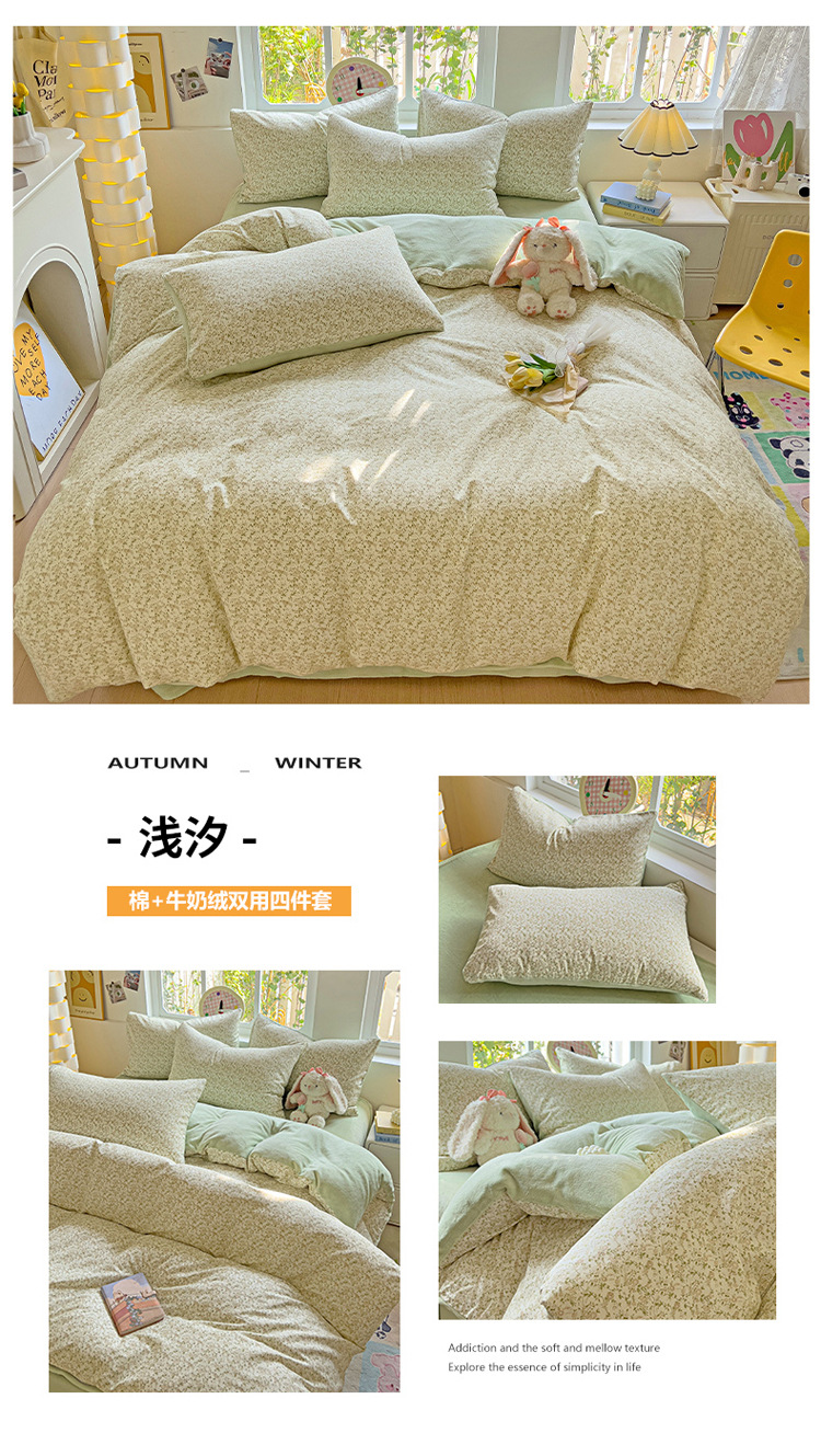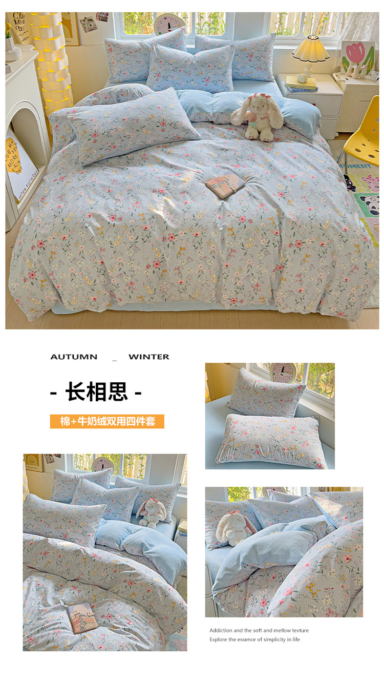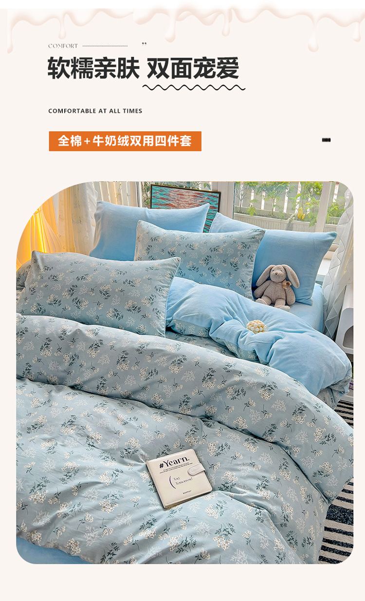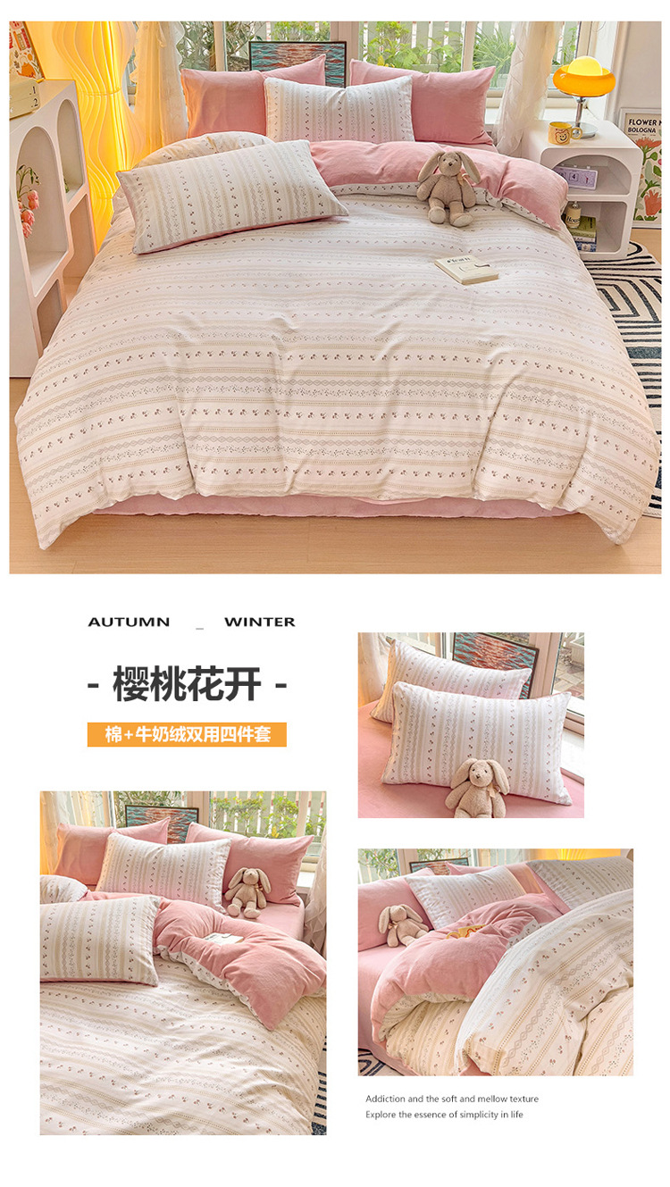 가을과 겨울 면화 패딩 우유 벨벳 4 피스 학생 어린이 기숙사 3 피스 난통