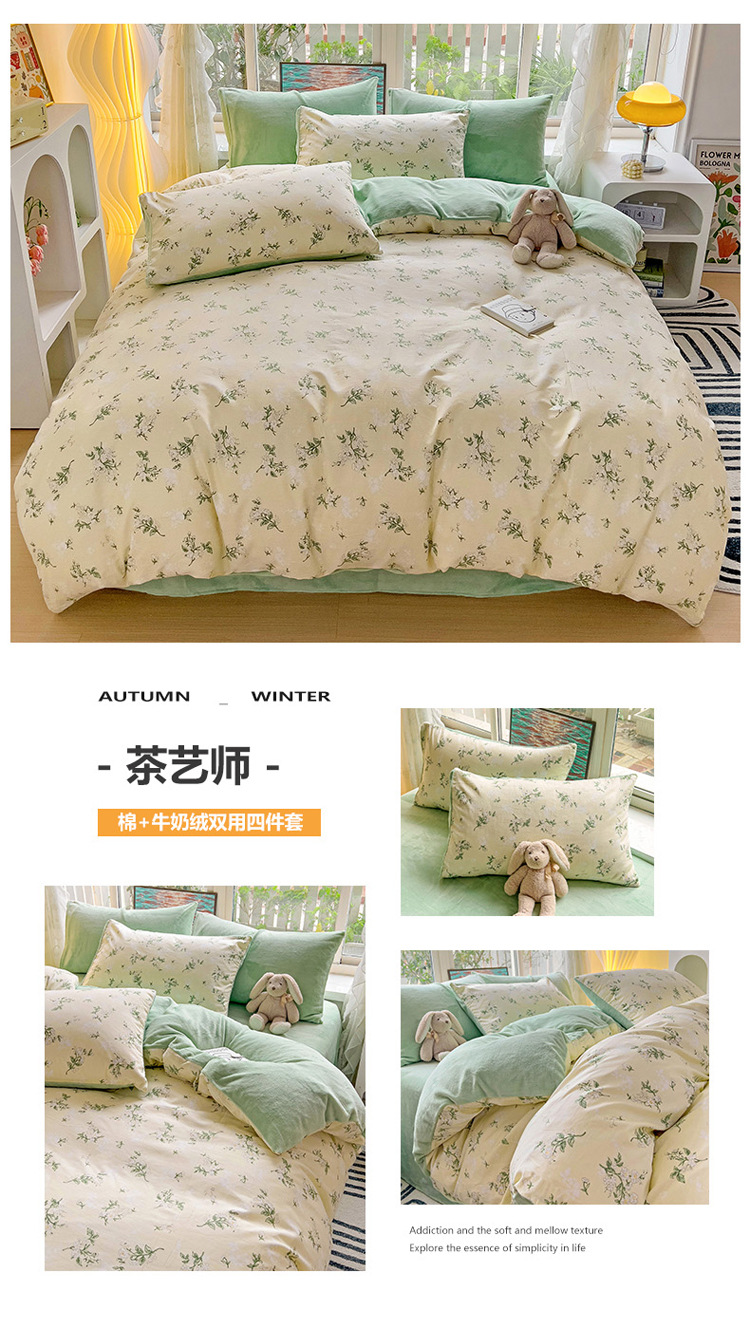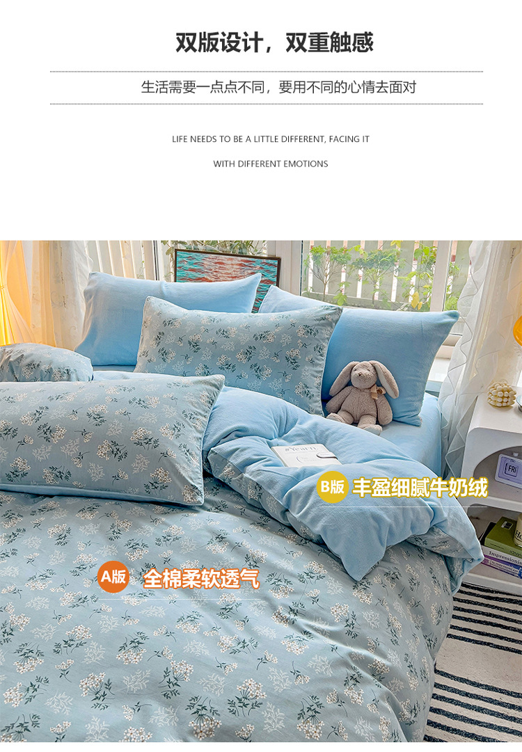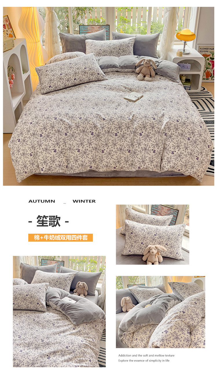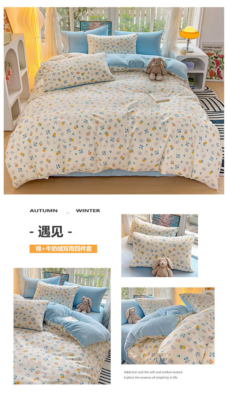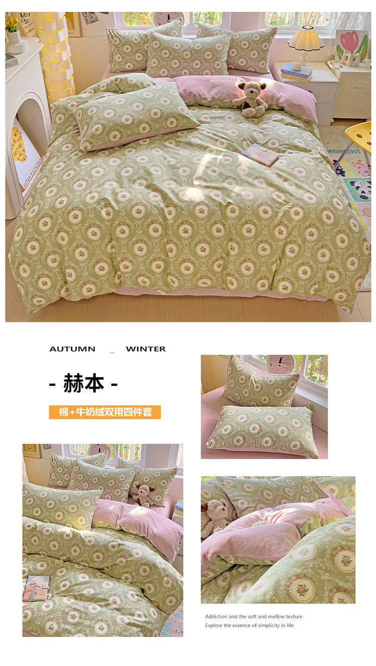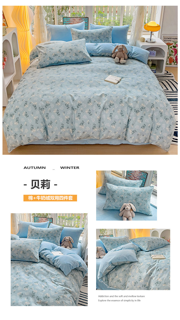 가을과 겨울 면화 패딩 우유 벨벳 4 피스 학생 어린이 기숙사 3 피스 난통