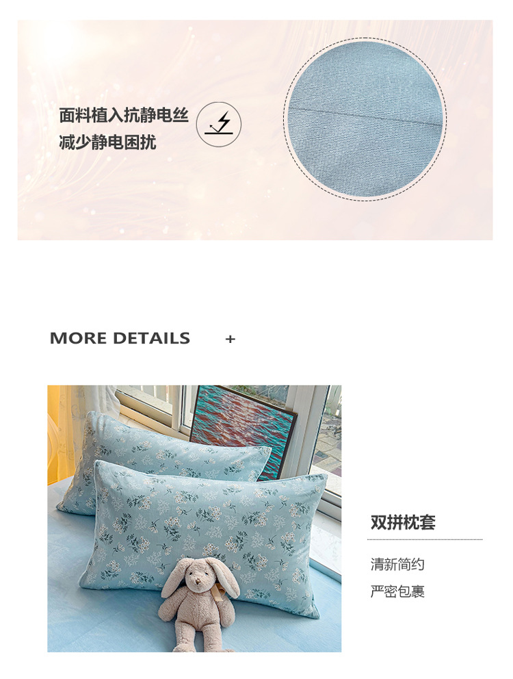 • 1.2m 침대시트 3종세트 [이불커버 150*210cm, 침대시트 180*230cm, 베갯잇 48*74cm*1]