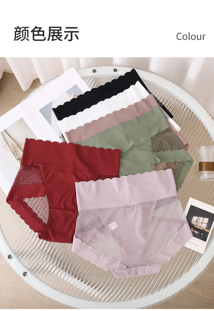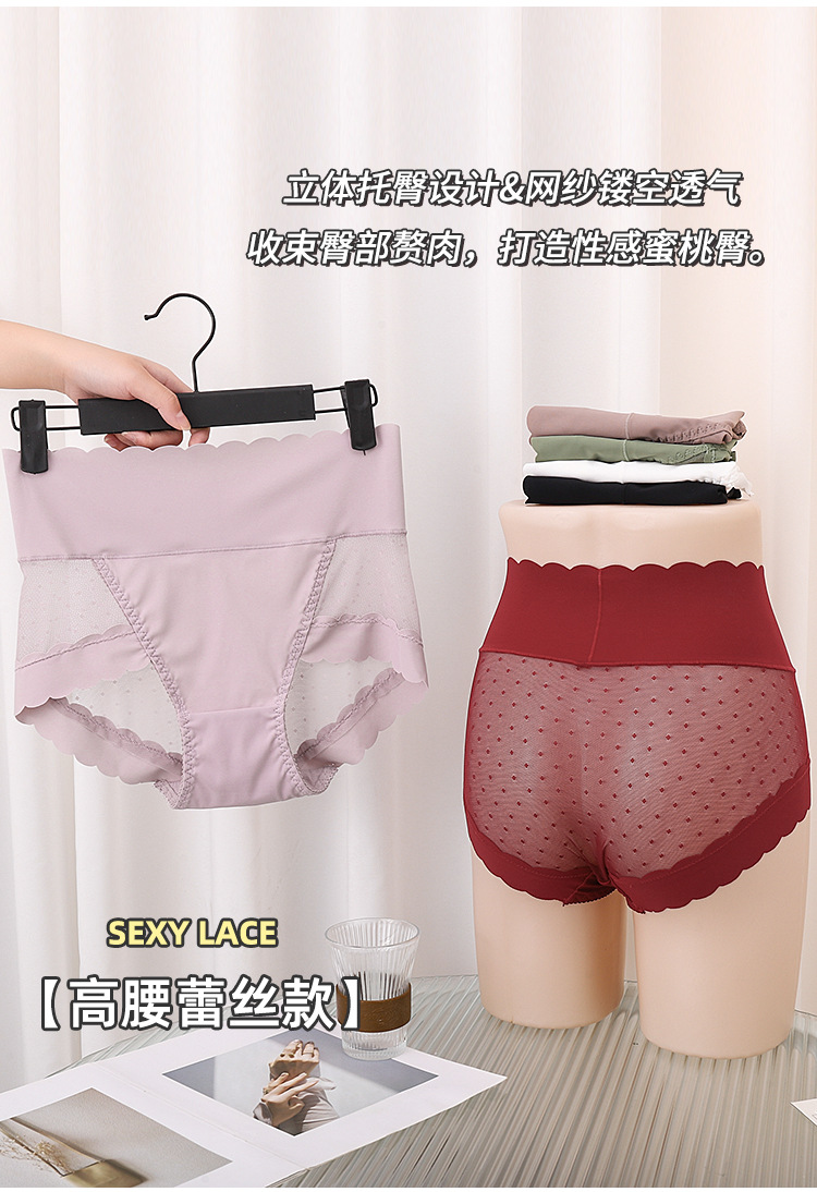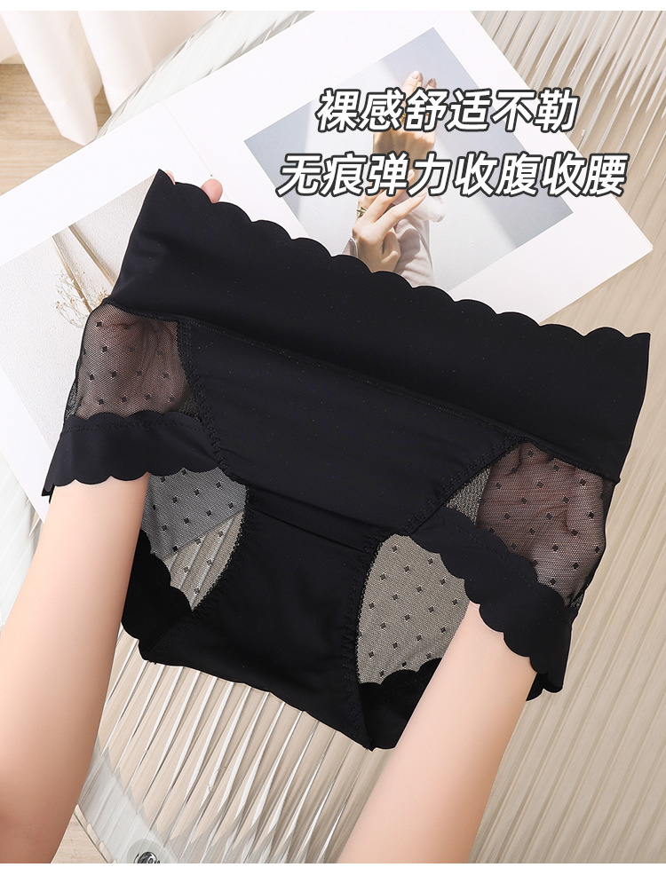 아이스 실크 추적없는 높은 허리 벨리 팅커 속옷 여성의 가을 및 겨울 얇은 섹시한 스티칭 웨이브 도트 메쉬 엉덩이 순수한 욕망