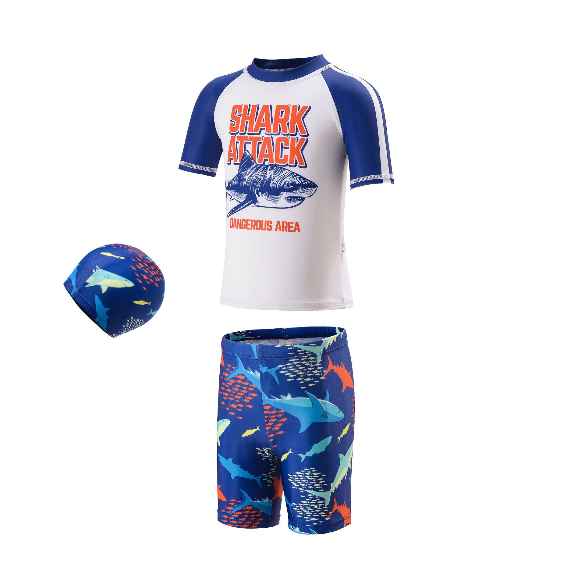 어린이 수영복 소년의 긴팔 빠른 건조 수영 트렁크 소년의 여름 원피스 수영 선 스크린 반바지 모자 3 피스 세트