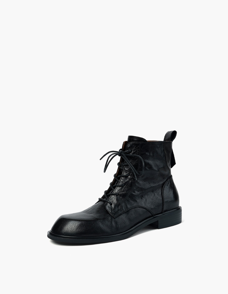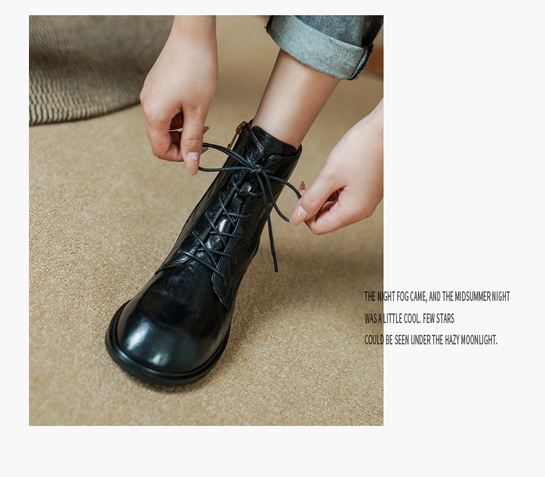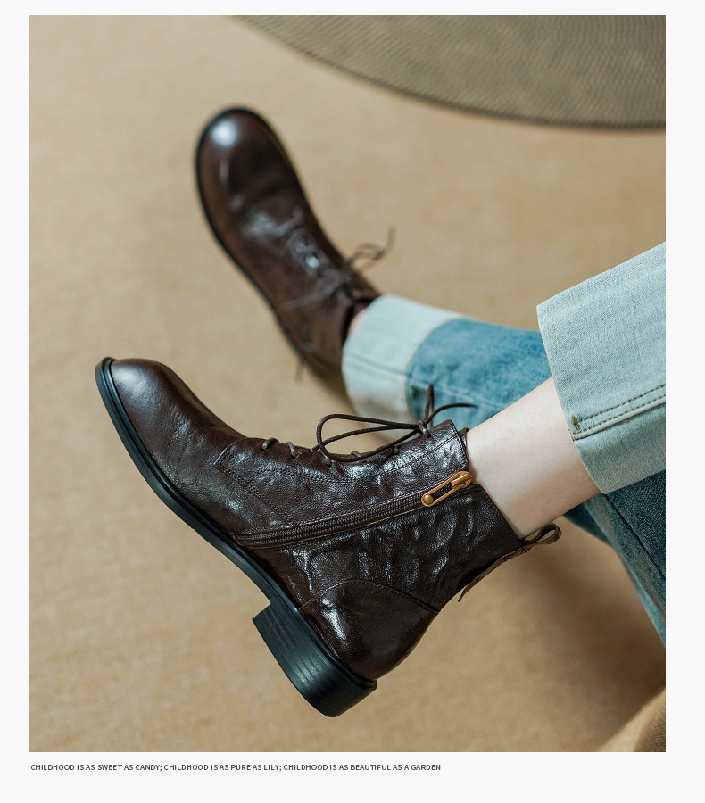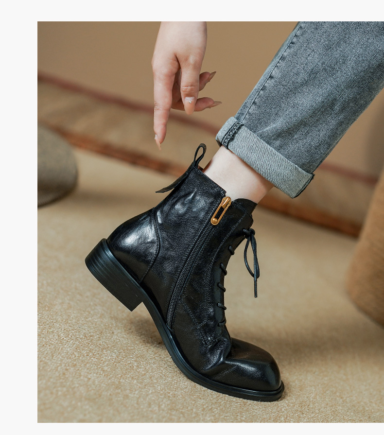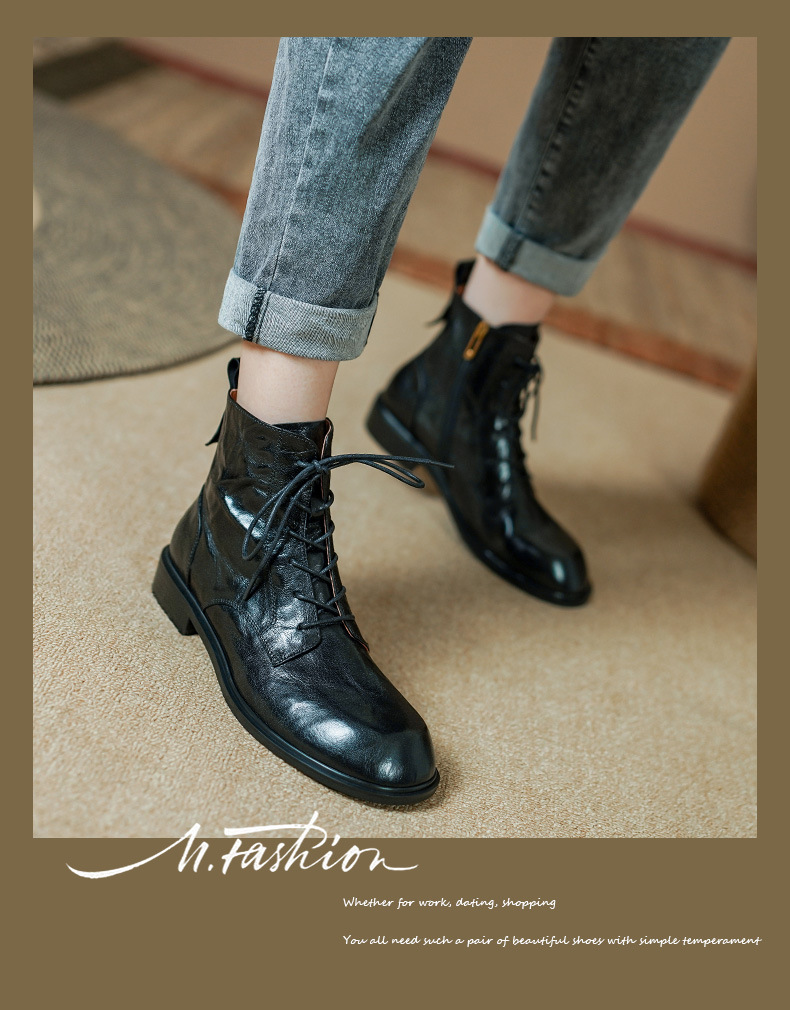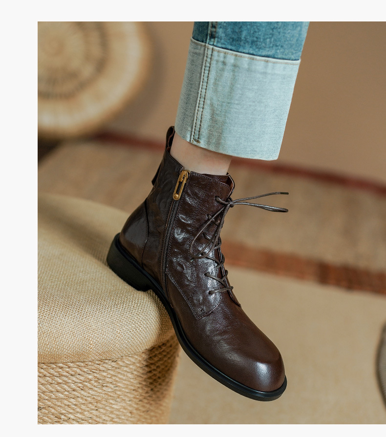 올해 인기있는 짧은 부츠 여성 2025 새로운 가을과 겨울 기모 여성 신발 레이스 업 가죽 플랫 영국 스타일 마틴 부츠