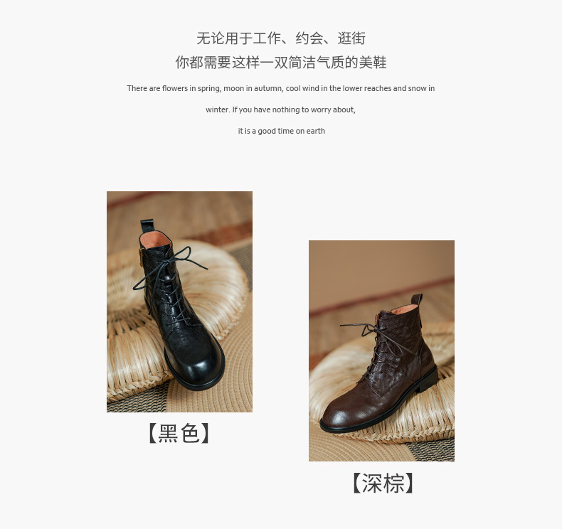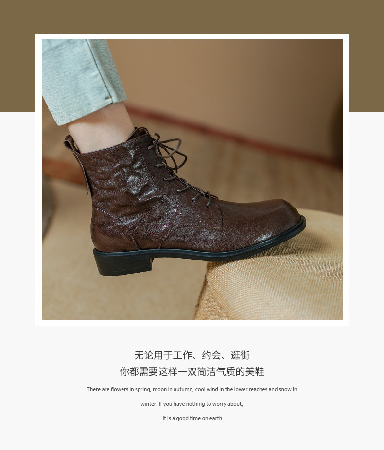 올해 인기있는 짧은 부츠 여성 2025 새로운 가을과 겨울 기모 여성 신발 레이스 업 가죽 플랫 영국 스타일 마틴 부츠스토어 가기