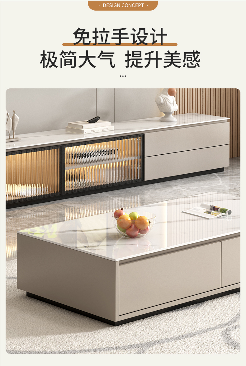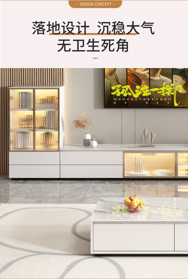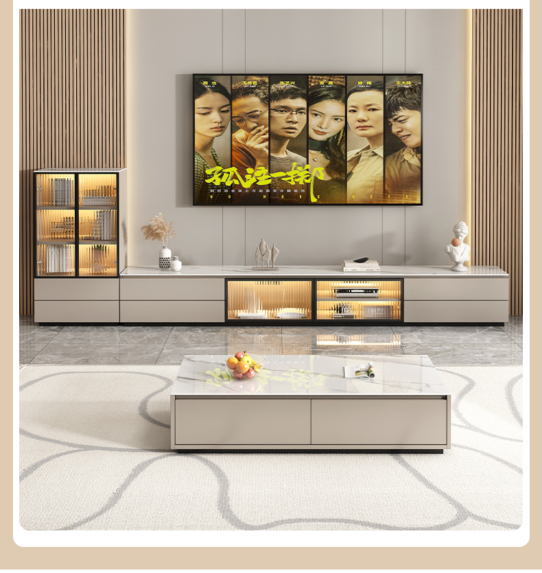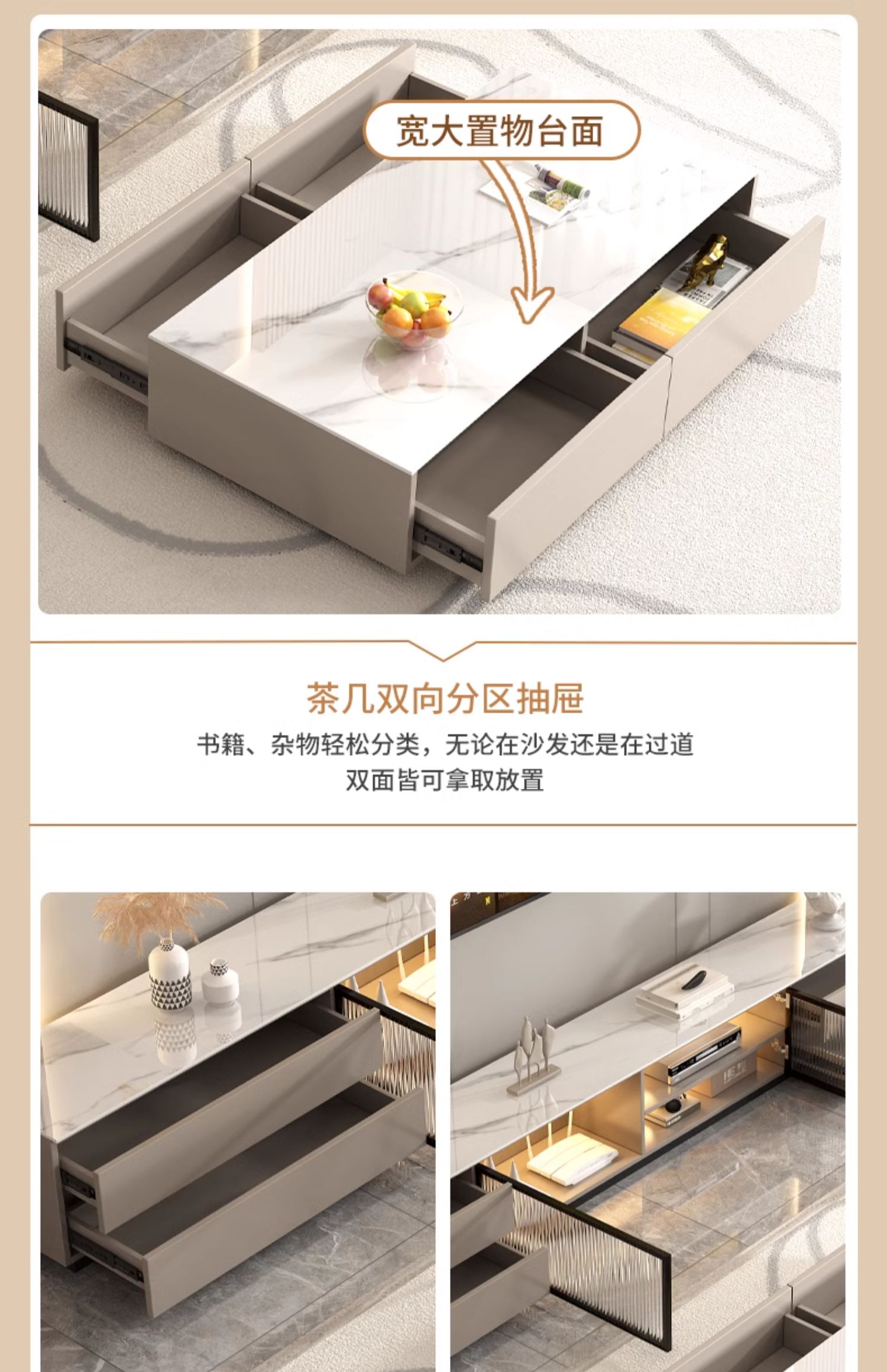 A8L TV 캐비닛 현대 간단한 홈 거실 작은 아파트 커피 테이블 조합 2024 새로운 층 록 보드 TV스토어 가기