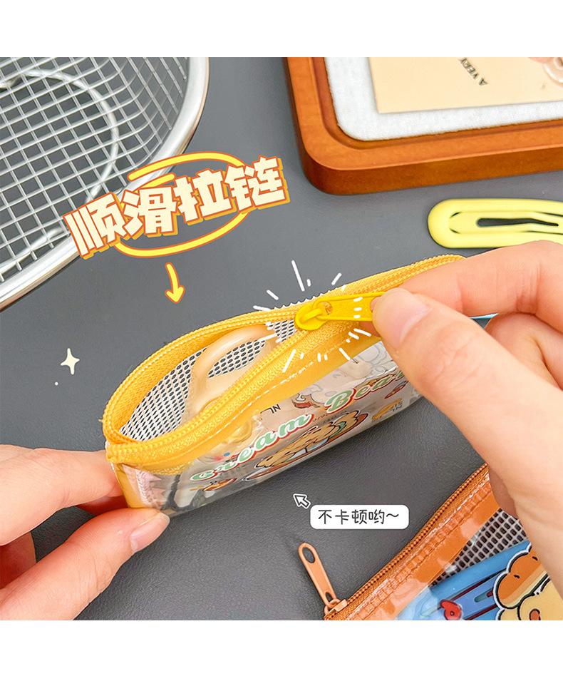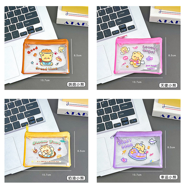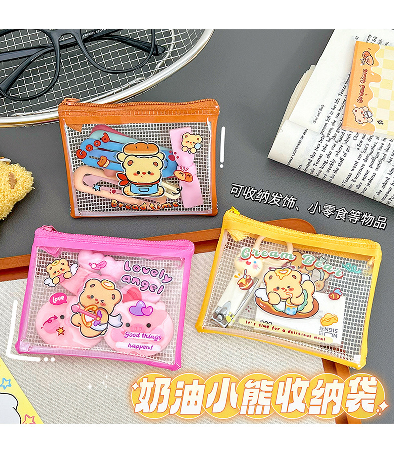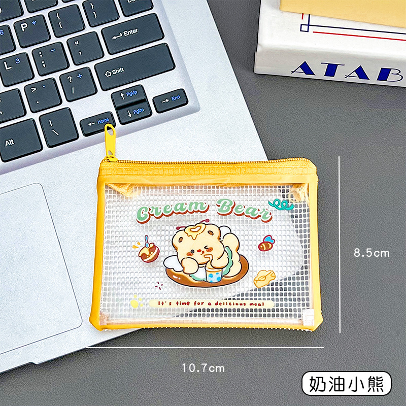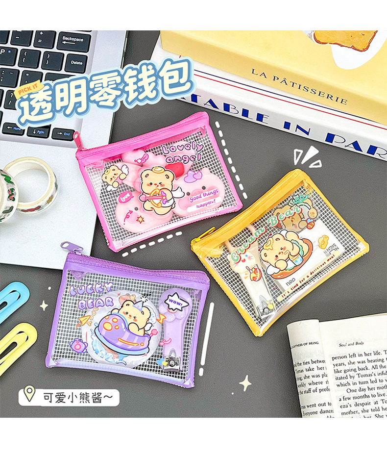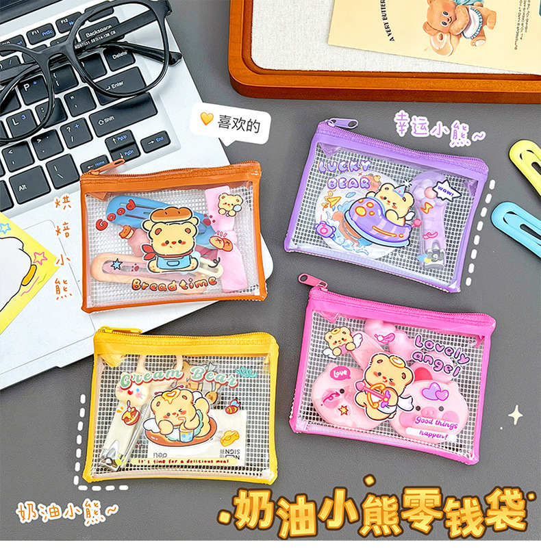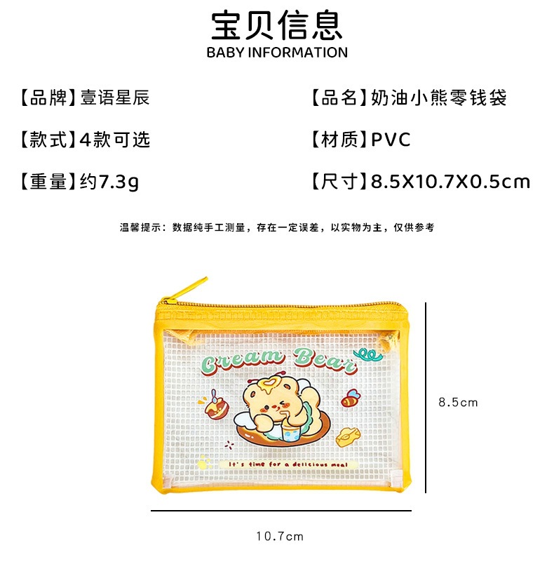 만화 크림 베어 동전 지갑 Pvc 귀여운 미니 저장 가방 투명한 동전 지갑 지퍼 가방스토어 가기