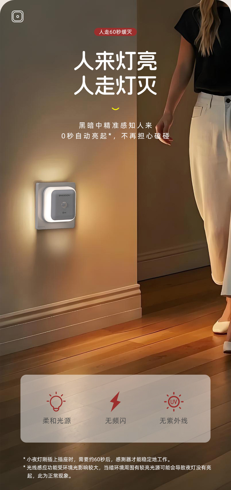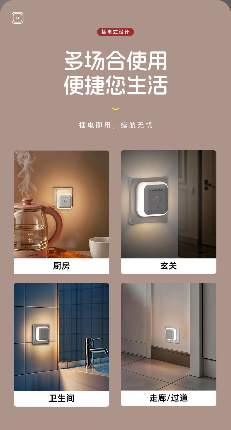 플러그인형 스마트 인체감지등 가정용 현관 화장실 주방 침실 학생 기숙사 스마트 센서