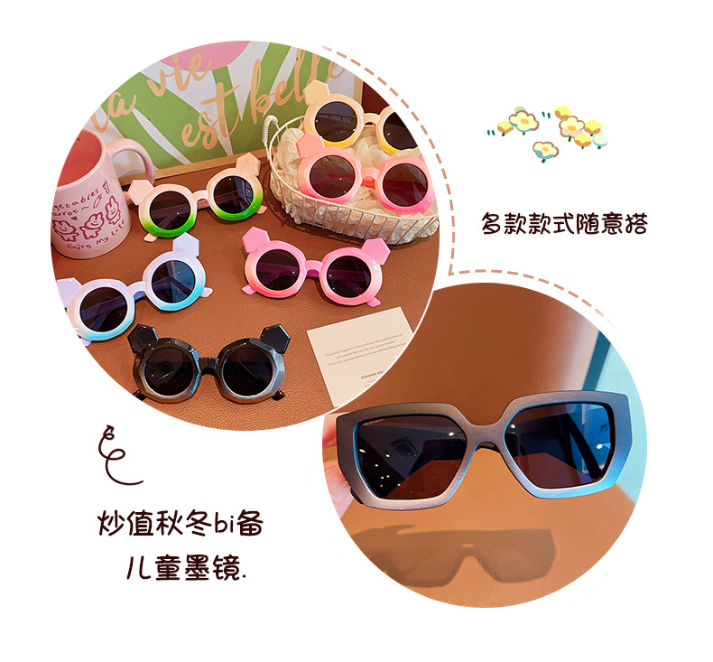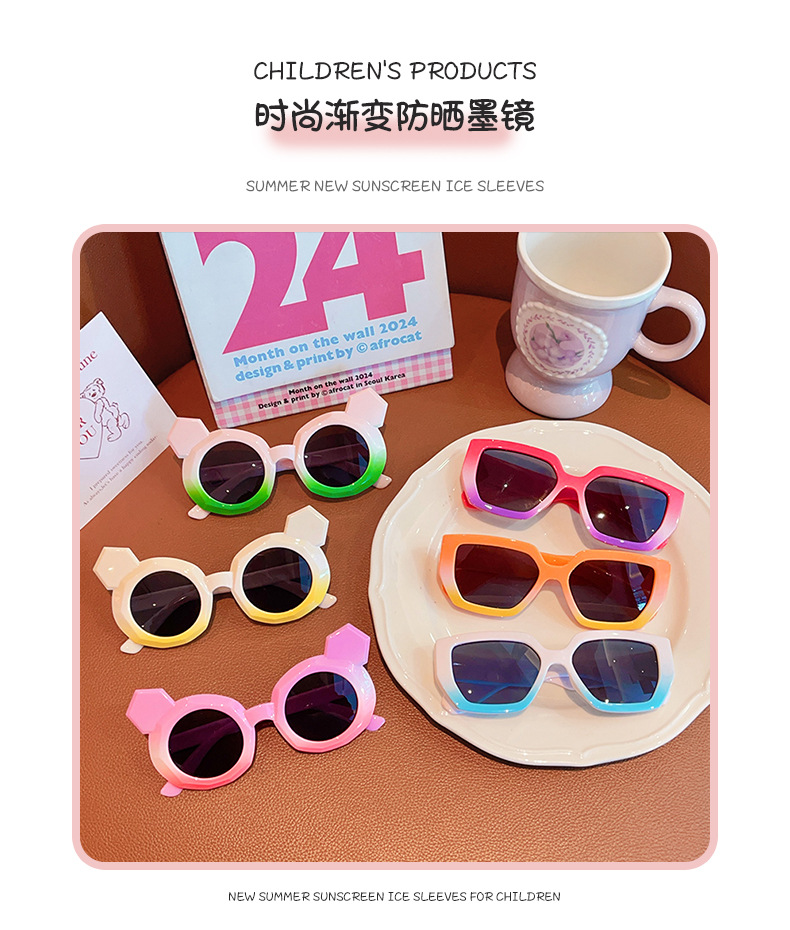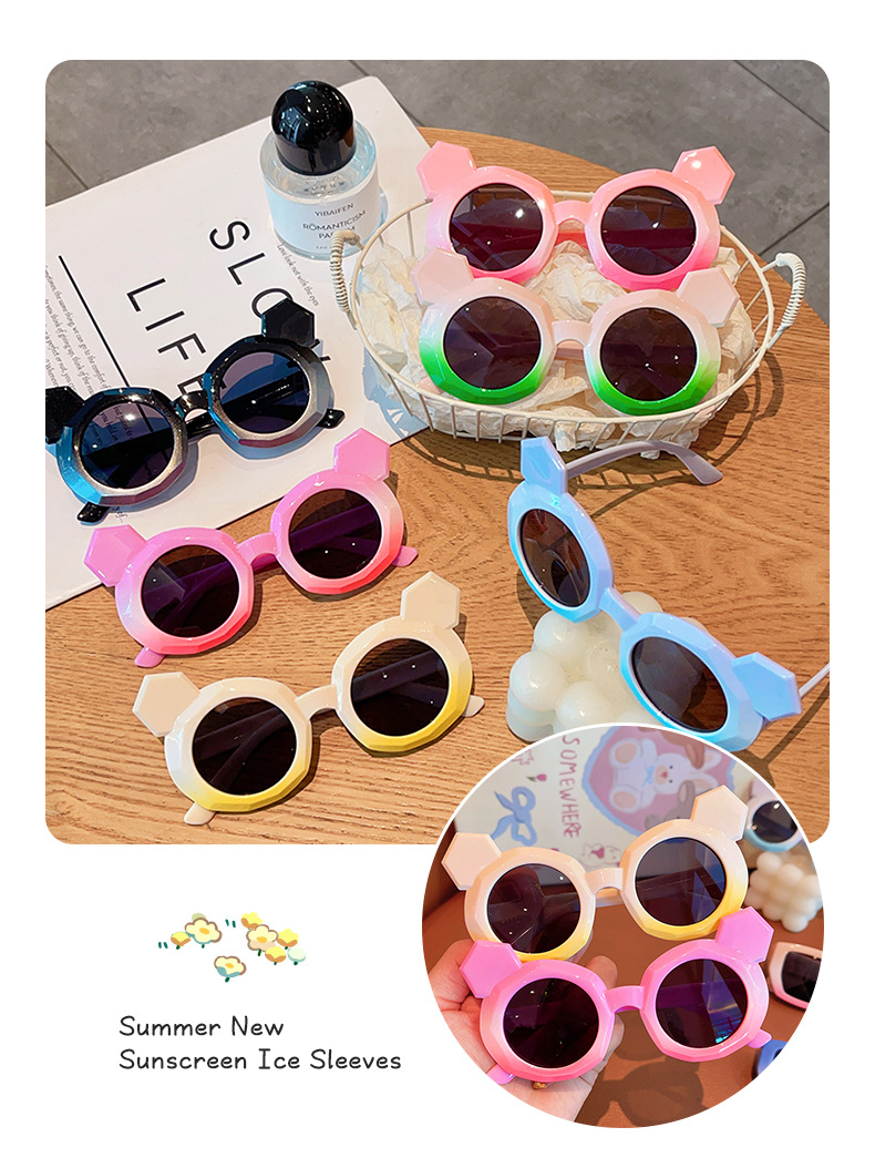 한국 귀여운 귀 어린이 선글라스 유행 태양 보호 UV 방지 아기 선글라스 소녀 여행 안경스토어 가기