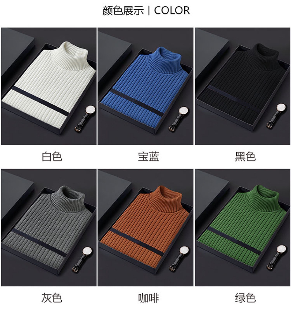 2024 년 가을과 겨울 남자 터틀넥 스웨터 유행 슬림 핏 두꺼운 베이스 스웨터 청소년 솔리드 컬러 트위스트 스웨터 남성용스토어 가기
