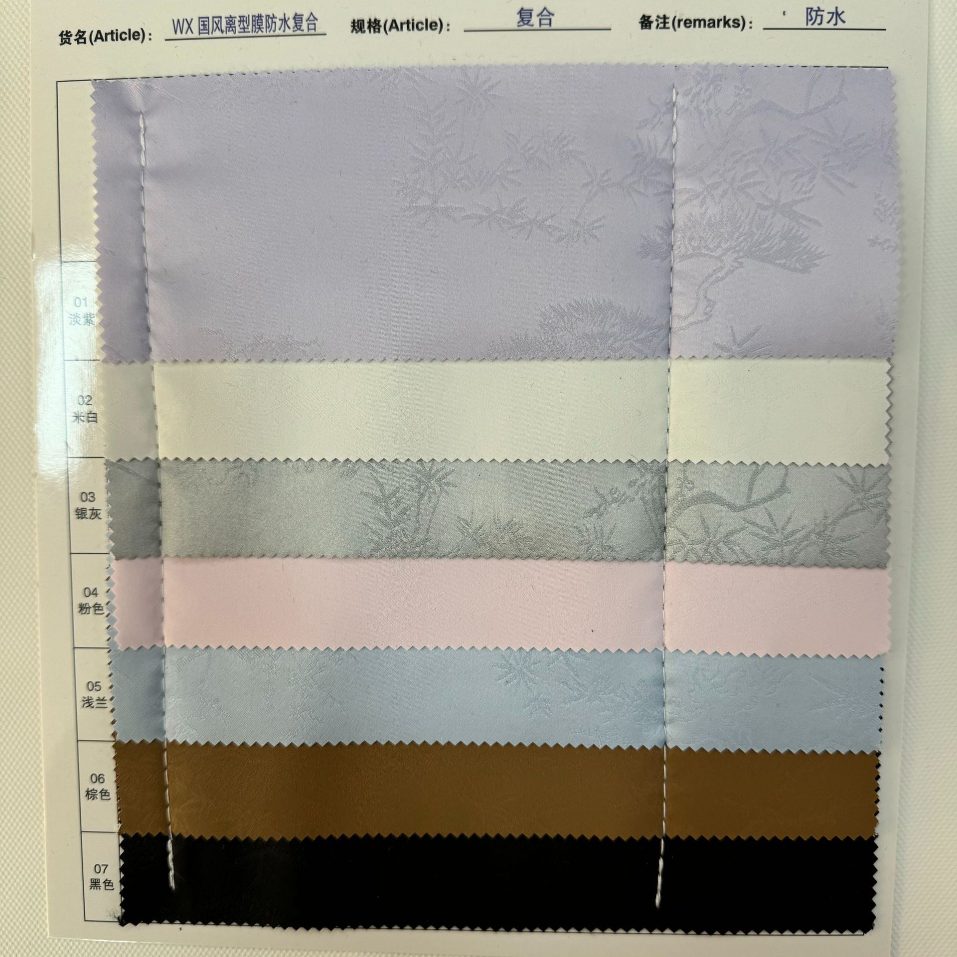 복합 천 옥스포드 천 포장 재료 야외 스포츠 장비 WX 국가 스타일 릴리스 필름 방수 다운 재킷 라이닝
