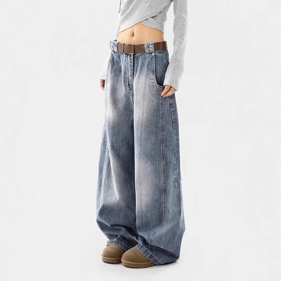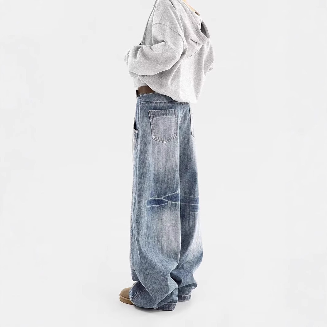 가을과 겨울 새로운 Machete 청바지 여성 미국 스타일 트렌디 브랜드 복고풍 오래 된 느슨한 캐주얼 스트레이트 와이드 다리 바지