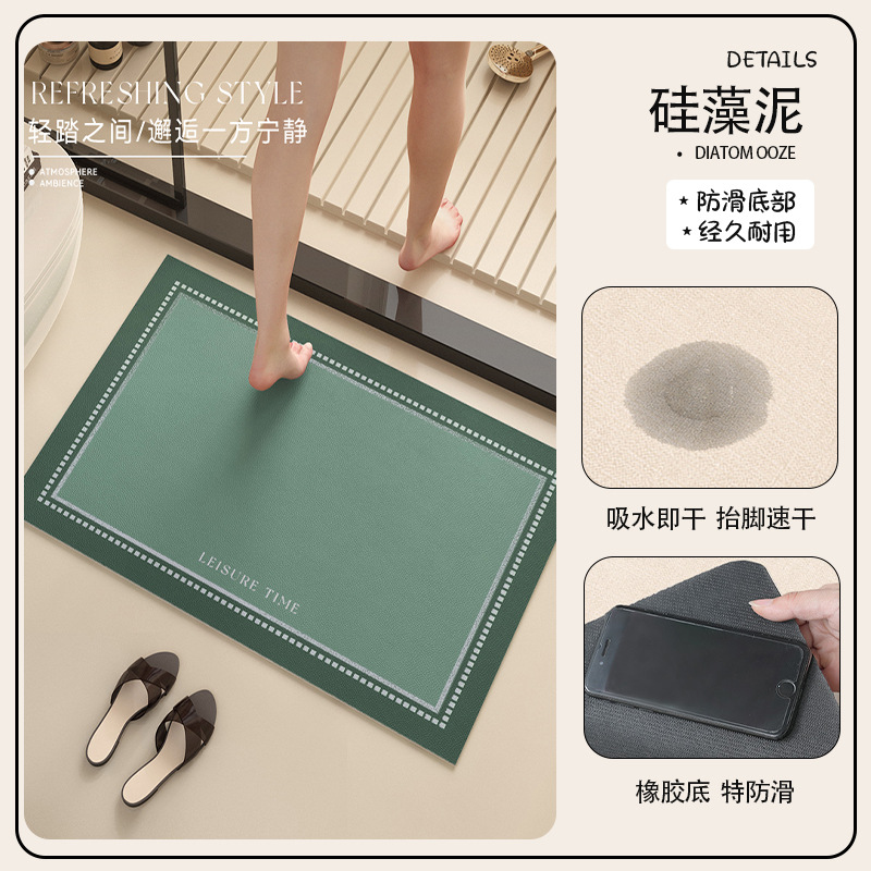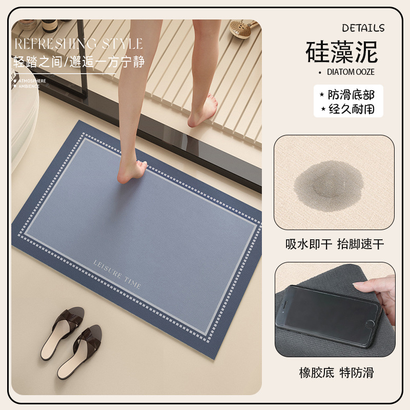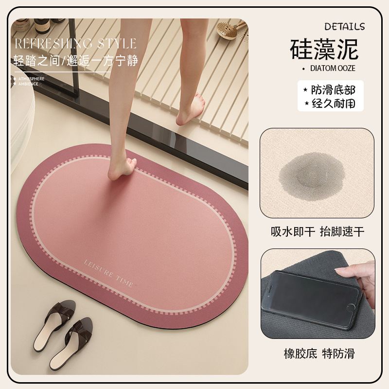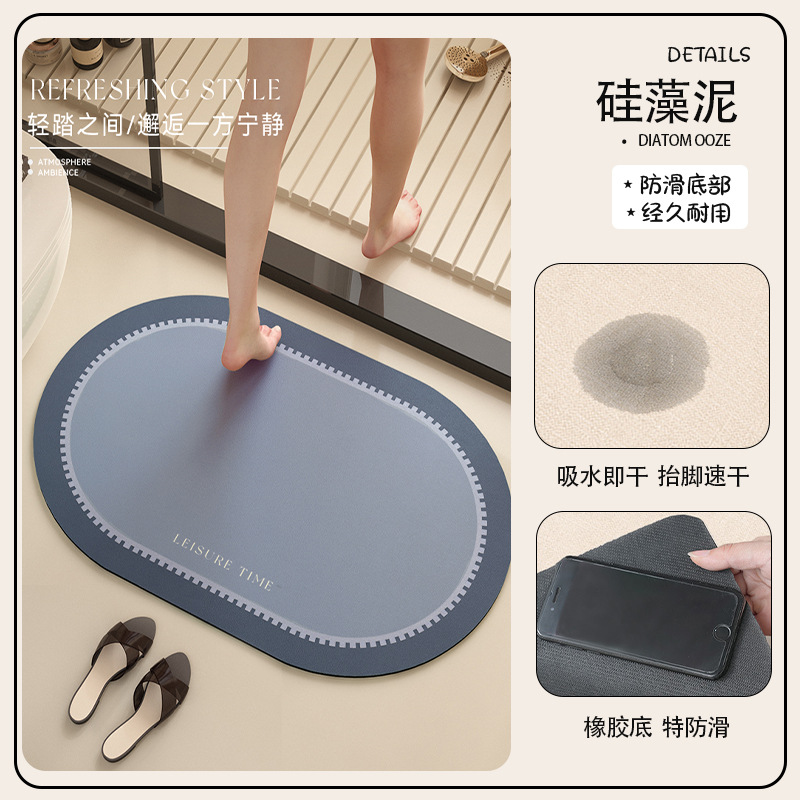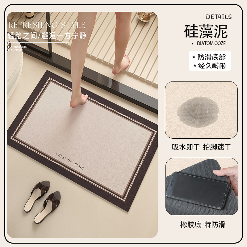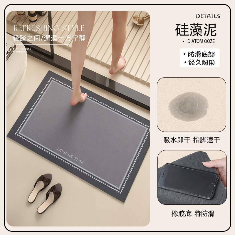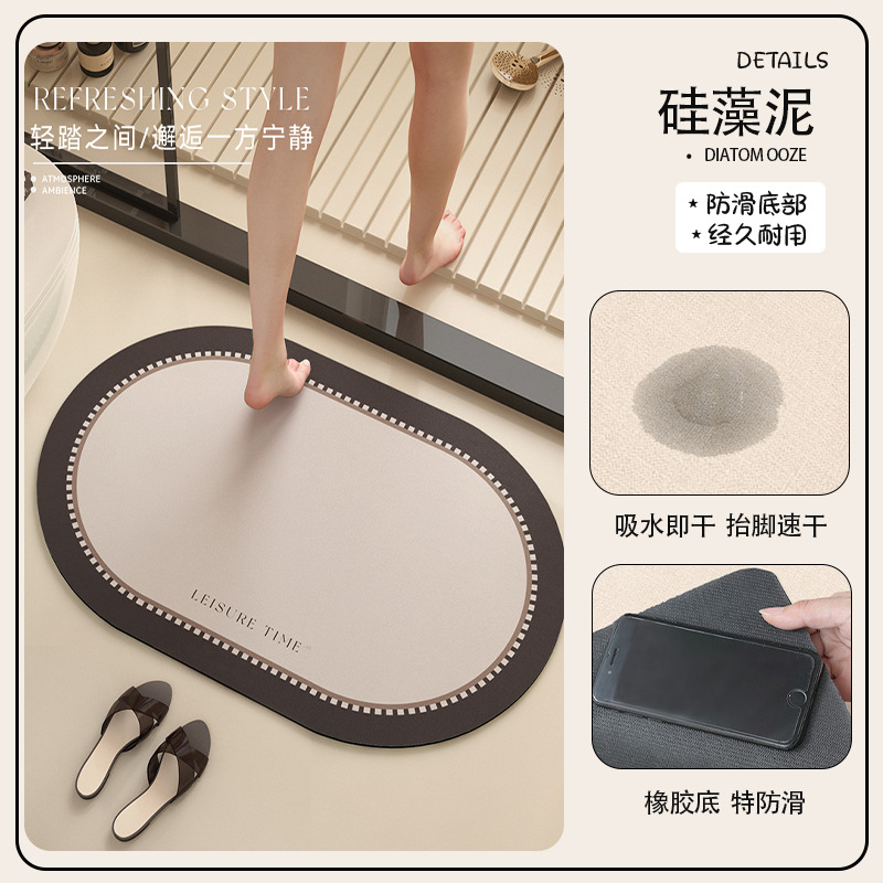간단한 Diatom 진흙 욕실 바닥 매트 가정용 물 흡수성 빠른 건조 미끄럼 방지 매트 화장실 문 먼지 방지 쉬운 관리 바닥 매트