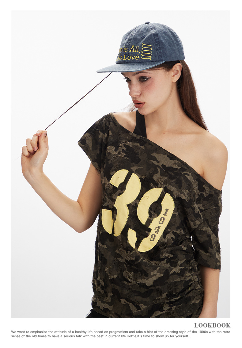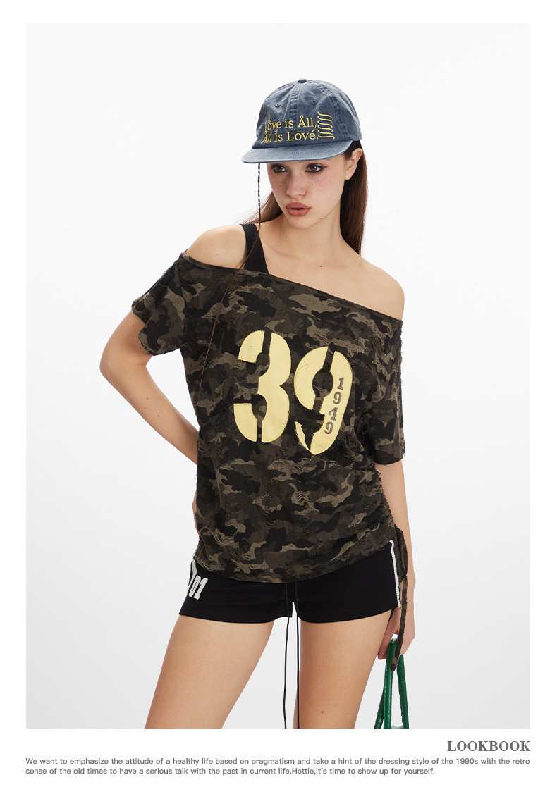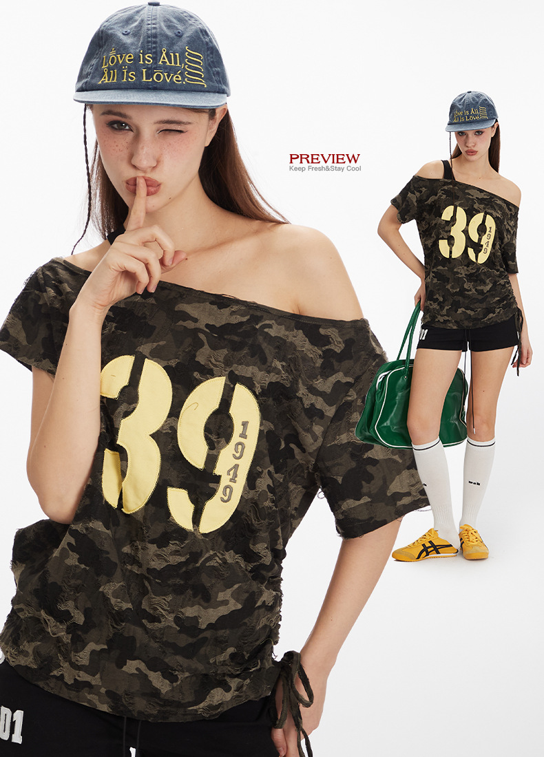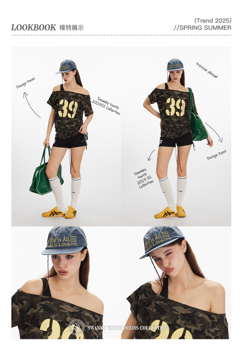 HeyHenry 디자인 뜨거운 소녀 위장 반팔 티셔츠 여성의 2025 여름 어깨 짧은 슬림 탑스토어 가기
