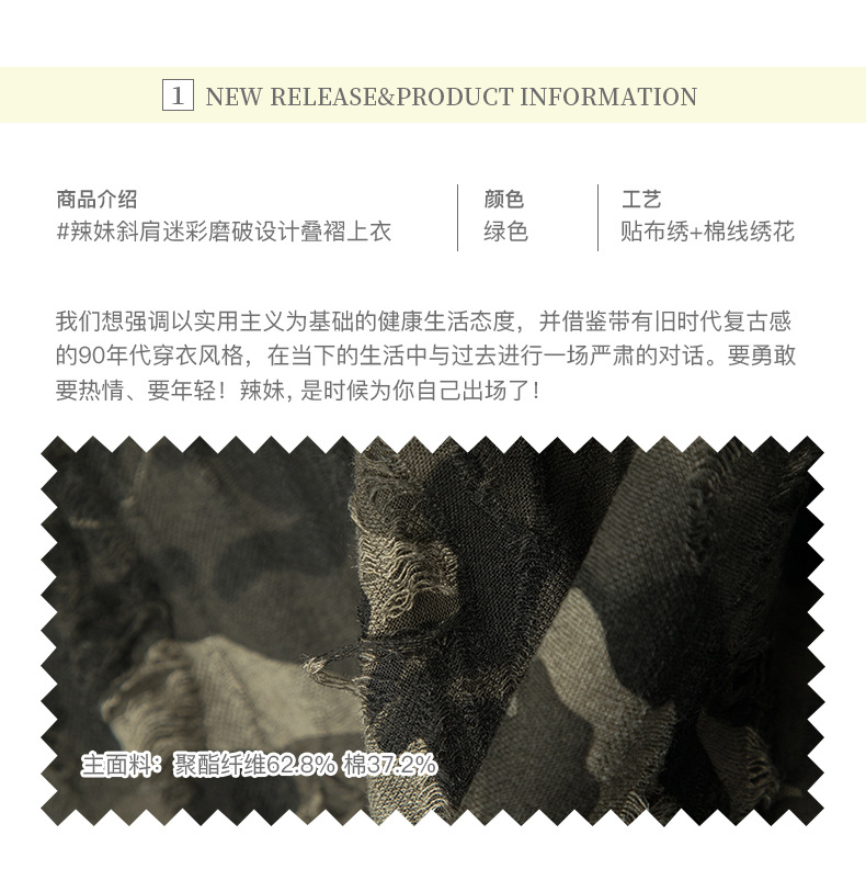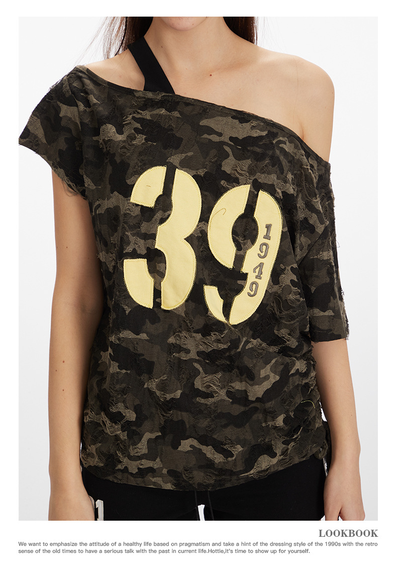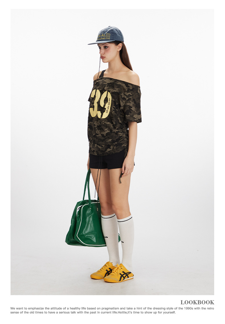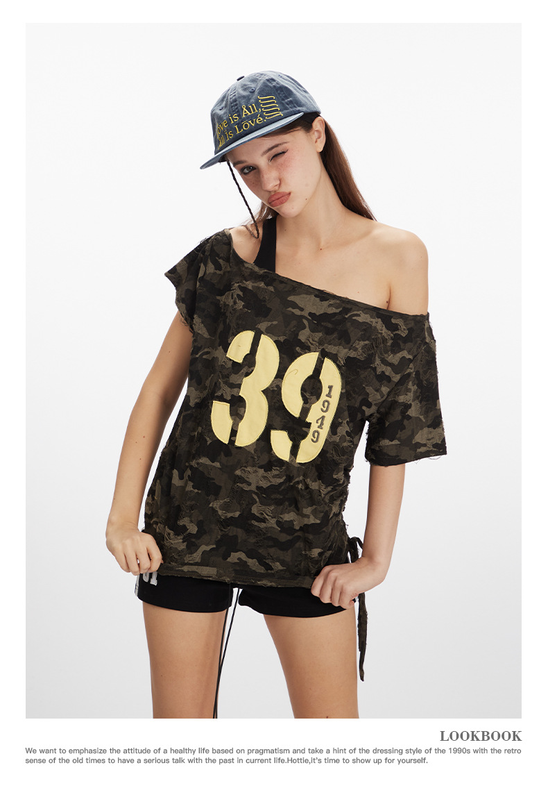 HeyHenry 디자인 뜨거운 소녀 위장 반팔 티셔츠 여성의 2025 여름 어깨 짧은 슬림 탑스토어 가기