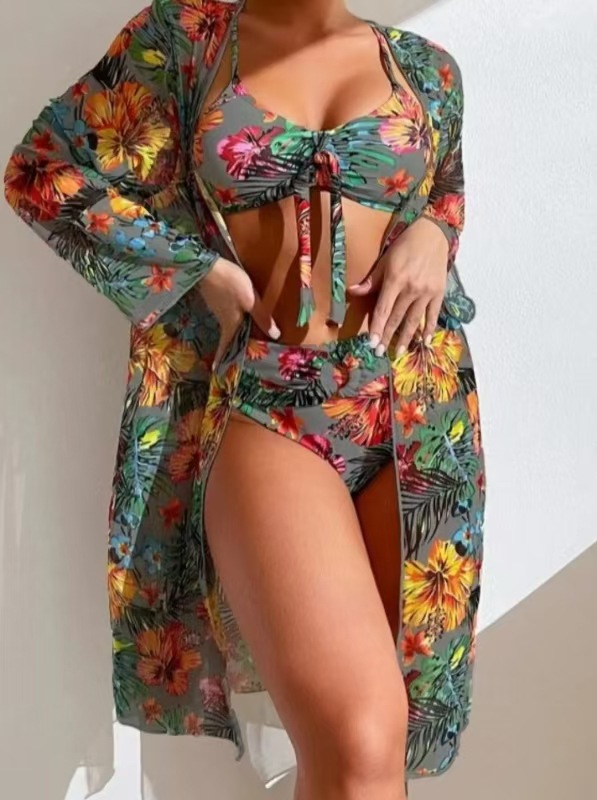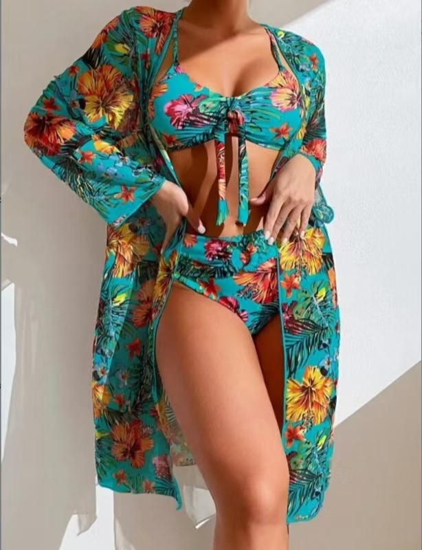 유럽과 미국의 뜨거운 수영복 높은 허리 섹시 3 피스 분할 비키니 세트 아마존 열대 우림 수영복스토어 가기