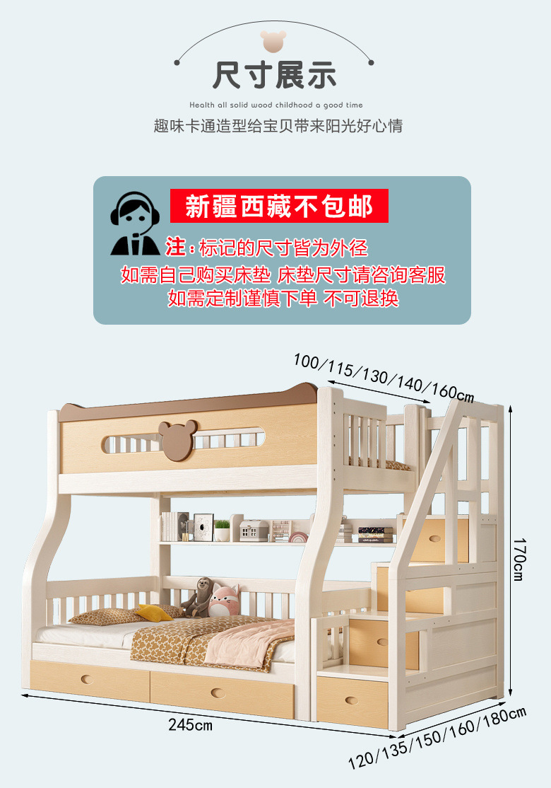 단단한 나무 침대 이층 침대 다기능 높은 낮은 침대 어머니 침대 성인 어린이 침대를 위한 2 층 침대스토어 가기