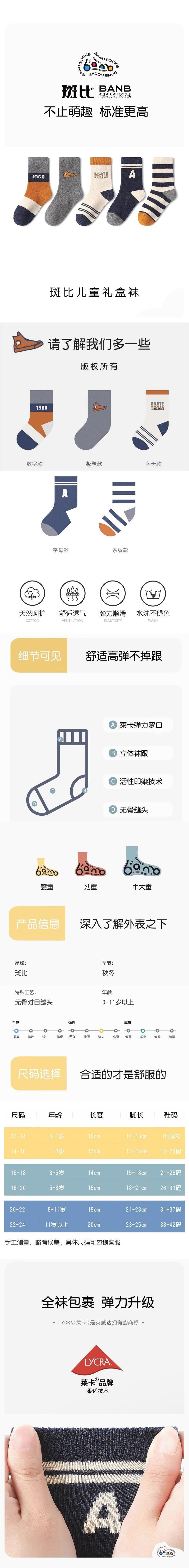 • BB21513 아동용 종아리 중간 양말 5켤레