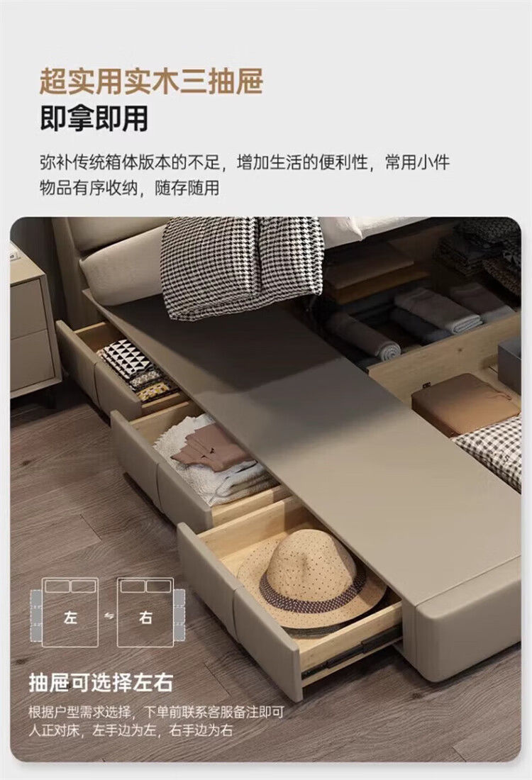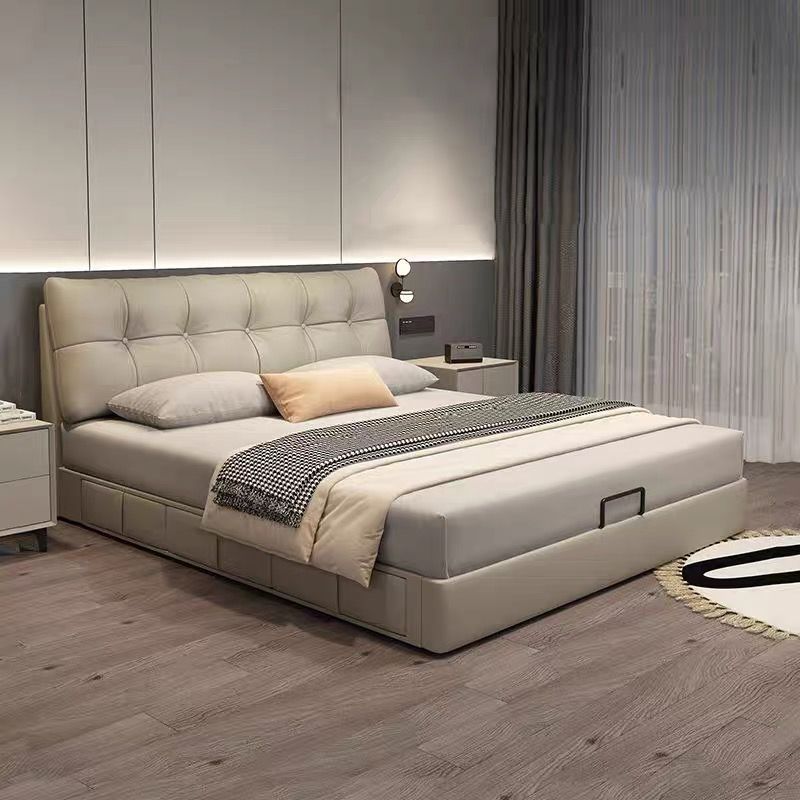 현대 간단한 가죽 침대 마스터 침실 하이 엔드 대기 더블 침대 라이트 럭셔리 인터넷 유행 작은 아파트 저장 빵 웨딩 침대