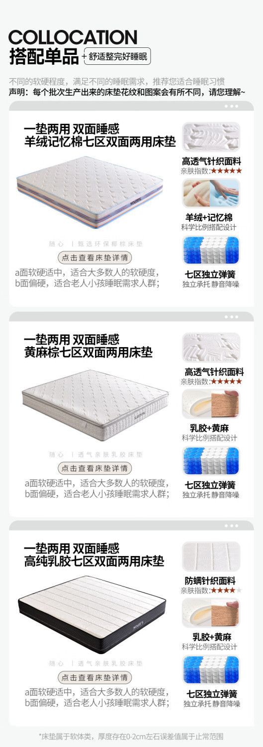 • 침대 + 20cm 니트 코코넛 야자 스틸 스프링 매트리스 + 캐비닛*2