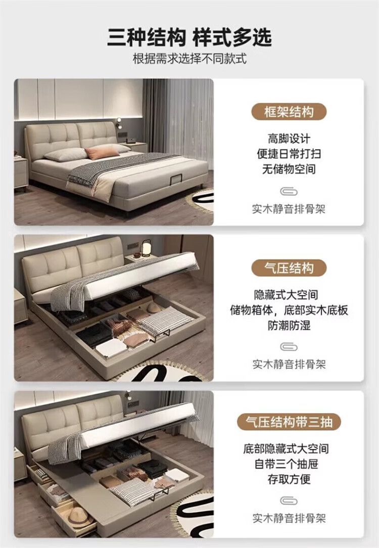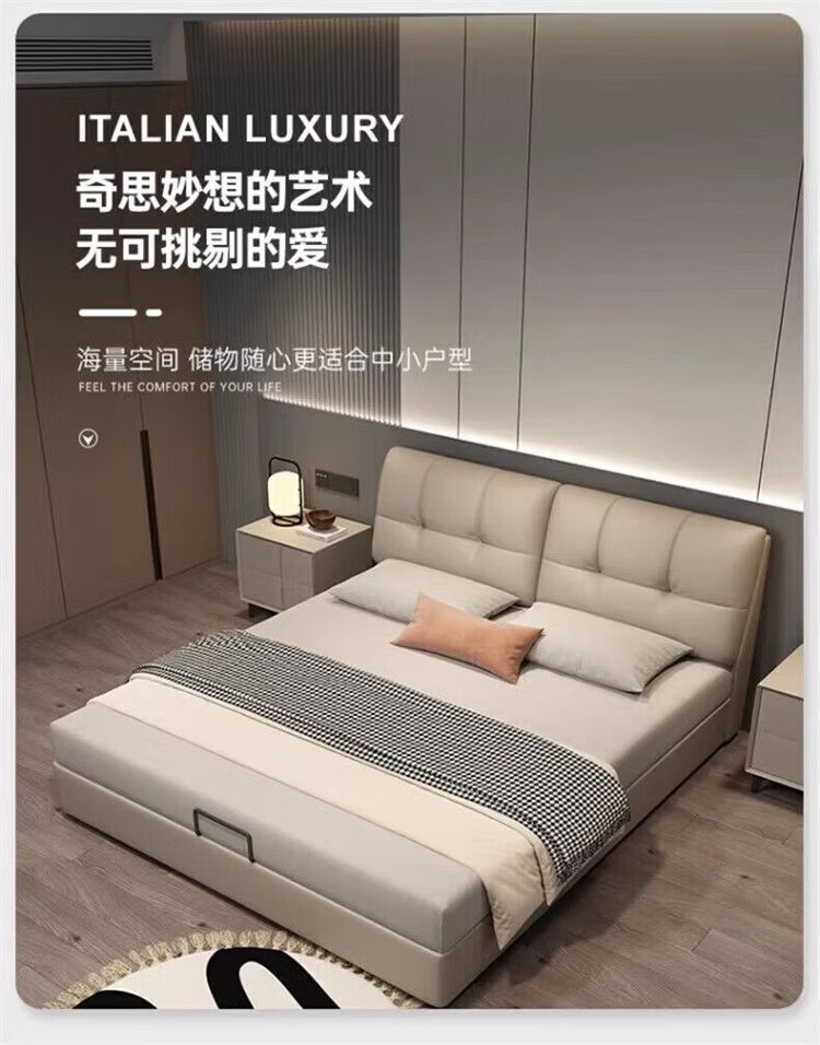 현대 간단한 가죽 침대 마스터 침실 하이 엔드 대기 더블 침대 라이트 럭셔리 인터넷 유행 작은 아파트 저장 빵 웨딩 침대스토어 가기