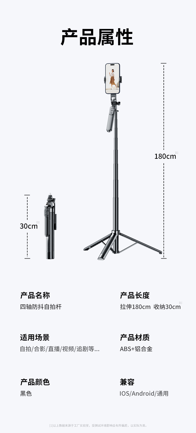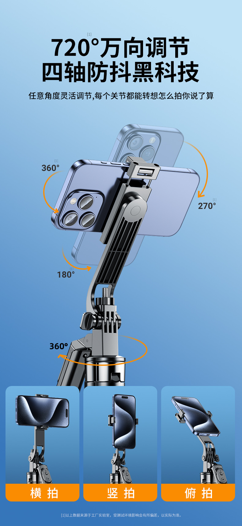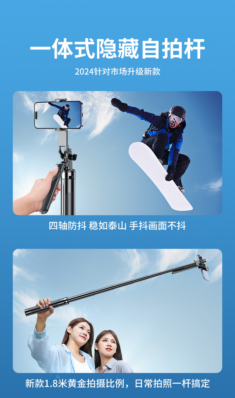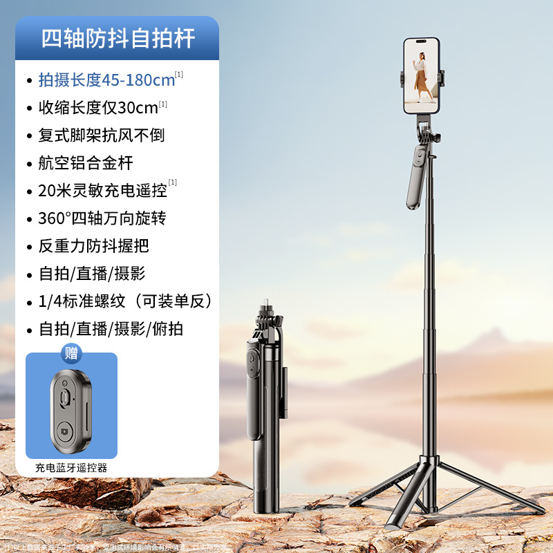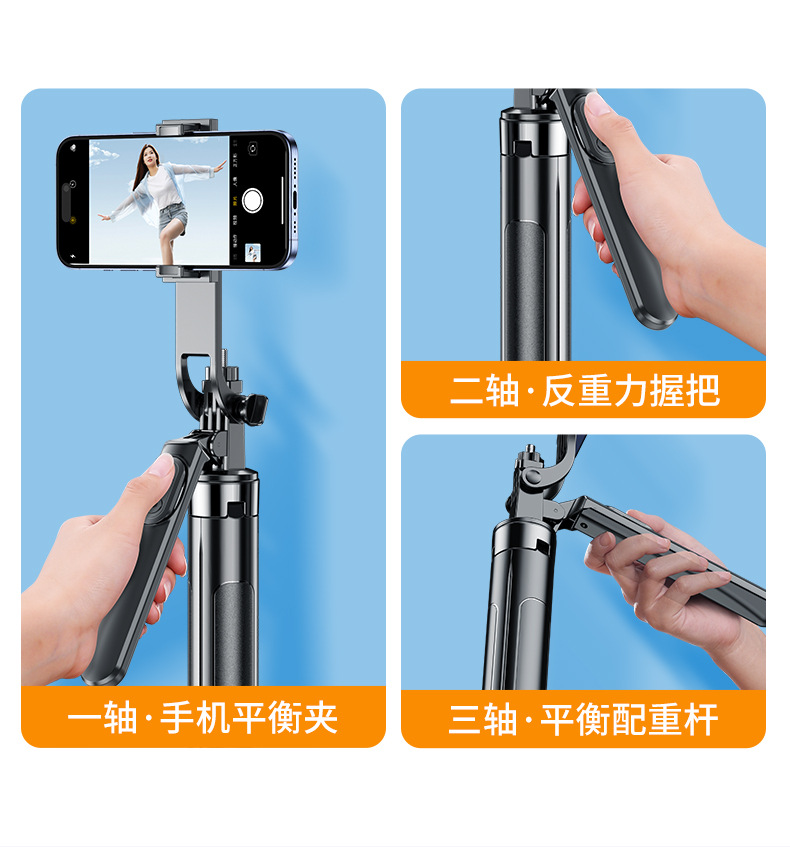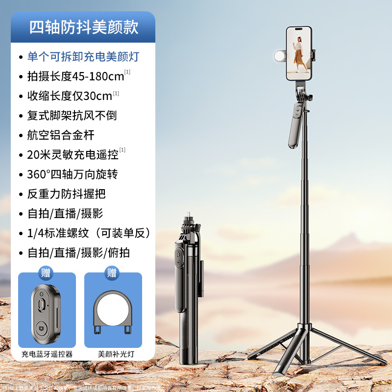 4 축 안티 쉐이크 휴대 전화 셀카 스틱 휴대용 핸드 헬드 팬 틸트 카메라 아티팩트 통합 랜딩 라이브 삼각대