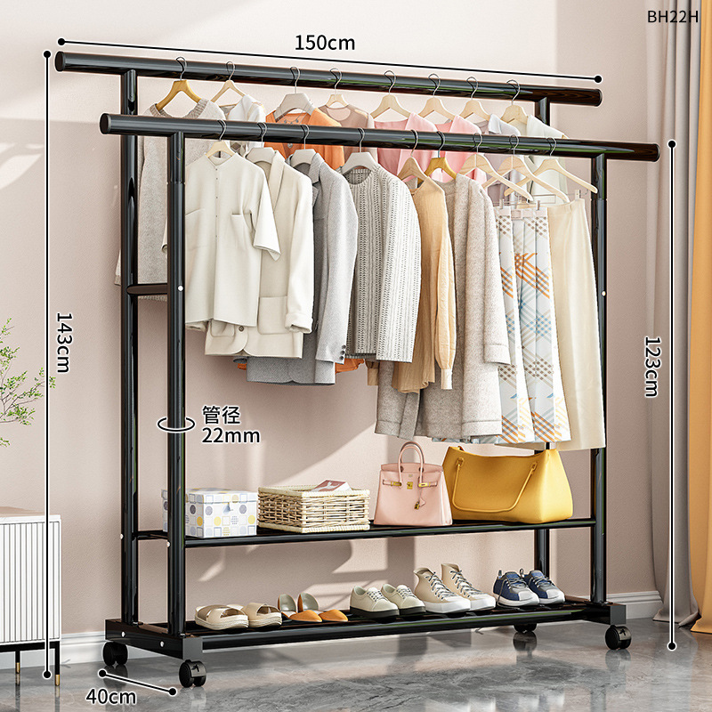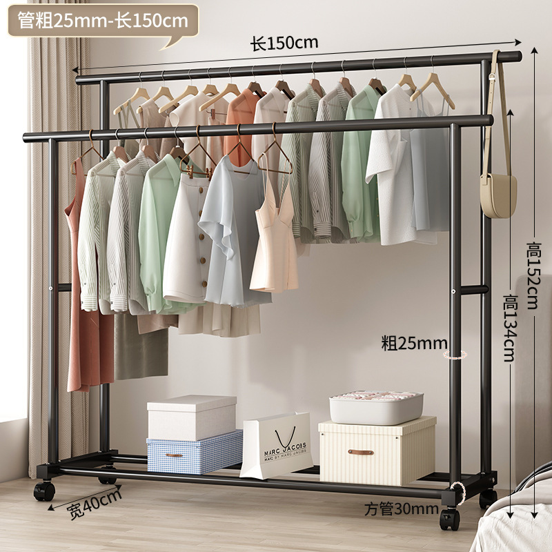• 1.5m 블랙 25파이프 이중봉 2단 특대형 바퀴형 옷걸이 (최대 하중 200kg)