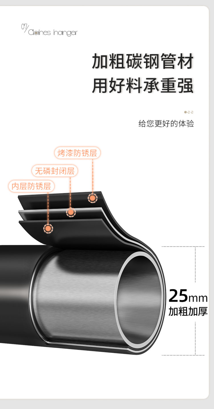 • 1m 검정색 25관 이중 극 매우 두꺼운 도르래 이중 옷걸이.