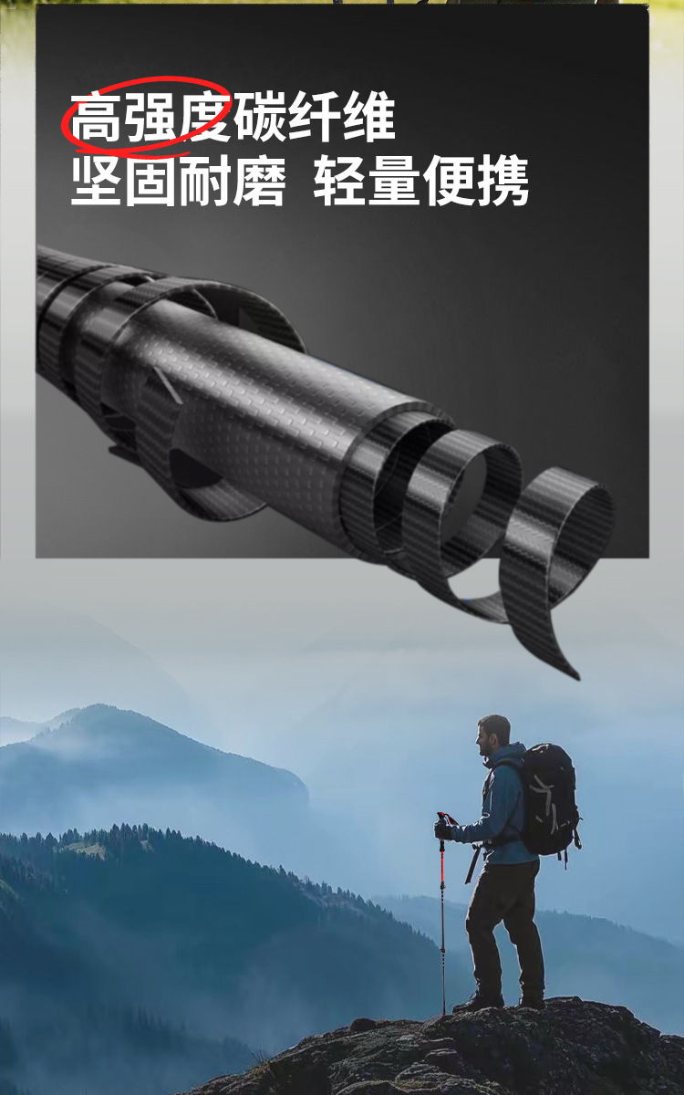 공장 등산 직원 전문 탄소 울트라 라이트 개폐식 야외 하이킹 탄소 섬유 워킹 스틱 등산 장비 접기
